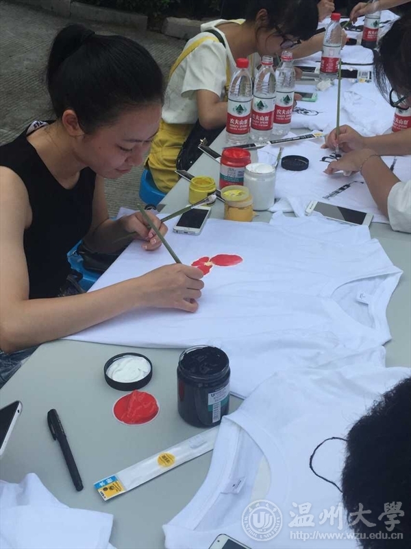 6月7日下午,beat365英国官方网站“艺家人”青年志愿者协会与温州市禁毒所在超豪学区进行“乐行学子梦”之世界禁毒日“禁毒于行,绘衣铭记”公益活动。志愿者们认真地用画笔在白T恤上绘制具有深度思考力的禁毒图样,活动氛围吸引一些路过的大学生纷纷驻足观看,有不少同学加入禁毒日活动中来要求一起绘画合影。同学们在白衬衫上加上自己对禁毒的感言和感悟,并且与自己的作品合影。这次活动激发了大学生用自己的专业知识向社会传播正能量关,增强了大学生的社会责任感。 拍摄者:张豪 通讯者:祝怡宁