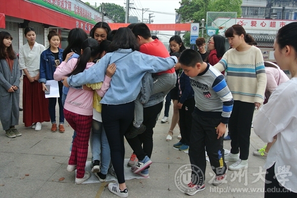 为更好地贯彻落实党的十八届三中全会关于“强化体育课和课外锻炼,促进青少年身心健康、体魄强健”的精神,4月18日,beat365英国官方网站艺家人青年志愿者协会与梅泉社区小朋友们开展了“走下网络、走出宿舍、走向操场”主题课外趣味运动会。