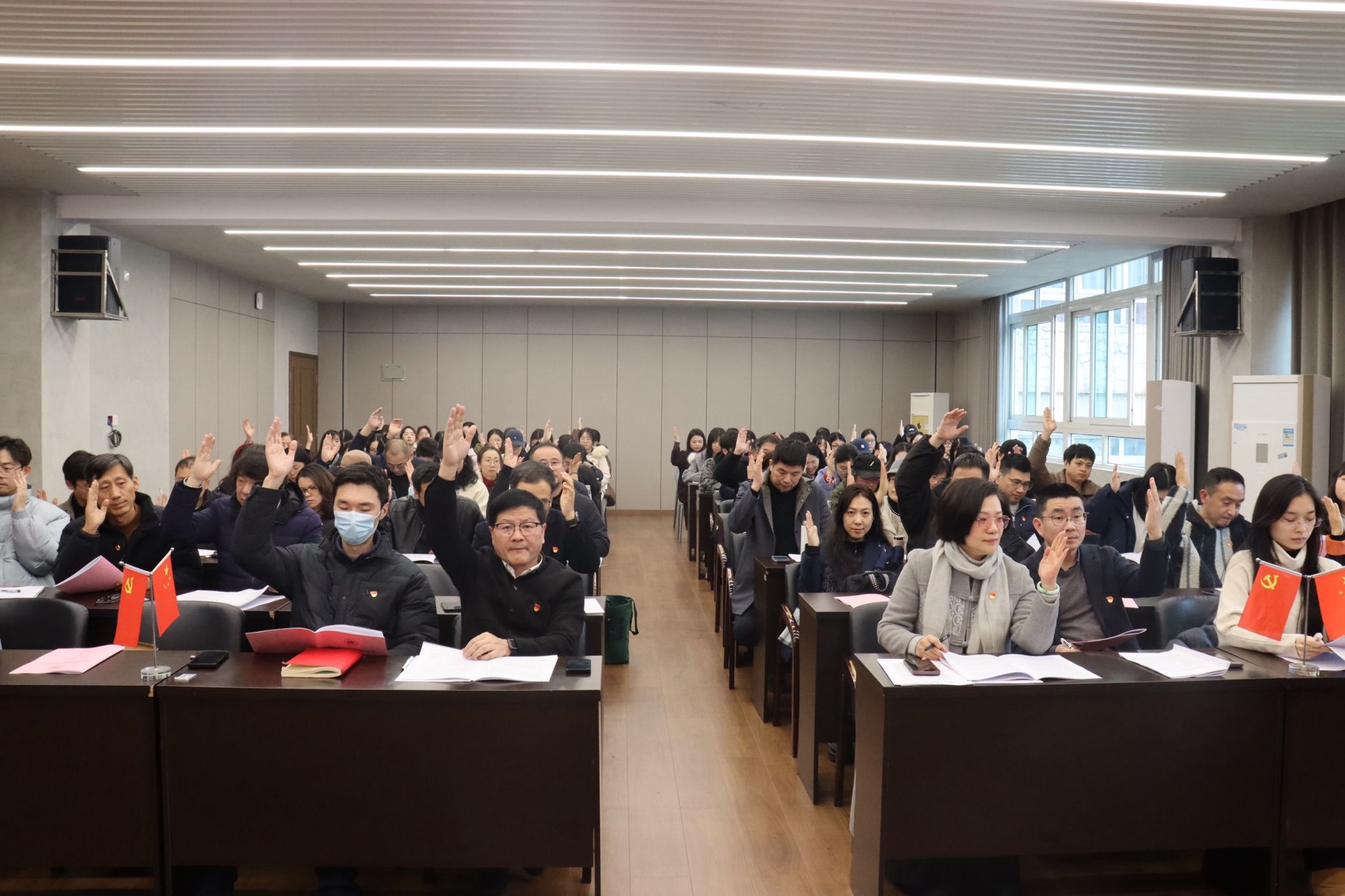 2025年12月24日下午,中共beat365英国官方网站党员大会在庄严的国歌声中隆重开幕。全院党员齐聚美术楼2B4001会议室,共同回顾总结过去五年的奋斗历程,擘画未来五年的发展蓝图,选举产生新一届党的委员会和纪律检查委员会。大会现场气氛庄重而热烈,洋溢着团结、民主、奋进的气息。