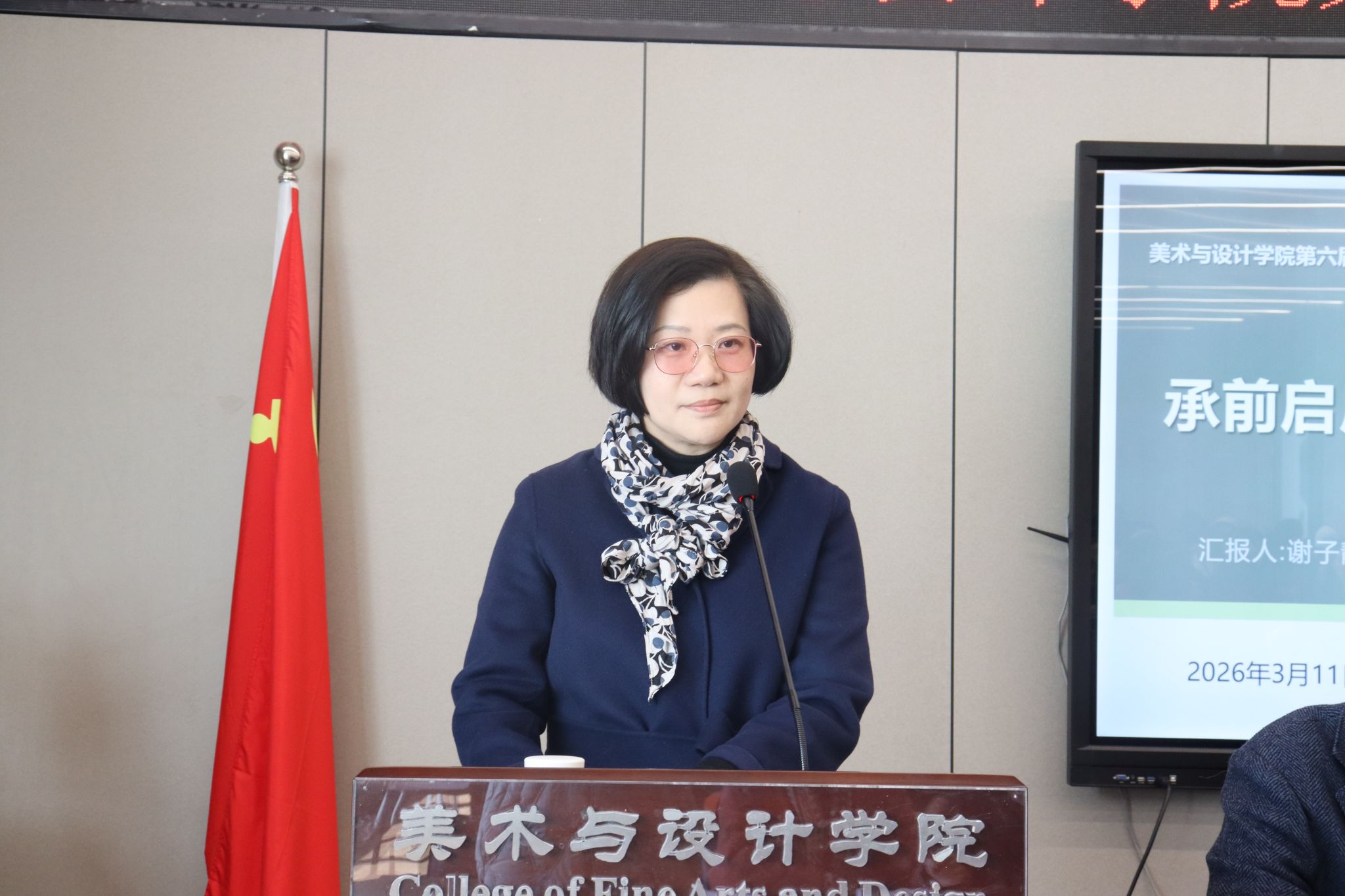 会上,由院长谢子静同志作2025年学院工作报告。过去一年,学院在学科建设上持续发力,稳步推进各项工作,不断完善学科体系、强化学科特色,相关专业综合排名稳步提升,学科影响力持续扩大;在人才培养方面,深耕美育育人初心,优化人才培养方案,强化实践教学环节,学生在各类国家级、省级学科竞赛中斩获佳绩,人才培养质量得到显著提升。报告明确提出2026年将围绕高层次人才引育、艺科深度融合等七大重点任务发力,凝聚全体教职工共识,奋力推动学院高质量发展迈上新台阶。希望全体教职工以本次大会为新的起点,携手推动学院各项事业再攀新高、再谱新篇!