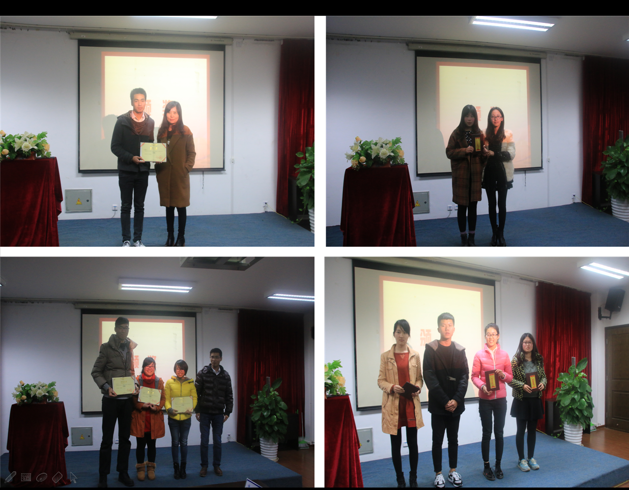 本次大赛设立了人气奖,评选出了最受学生欢迎的创业企划。随后,各位评委对参赛人员的展示进行了总结性点评。首先表达了对每一位选手的肯定与支持,同时也指出了各个选手在创业道路中的不足,为每一位想创业、即将创业或在创业的选手提出了宝贵的建议。最后,每一位获奖选手在热烈的掌声中领取了属于他们的获奖证书。