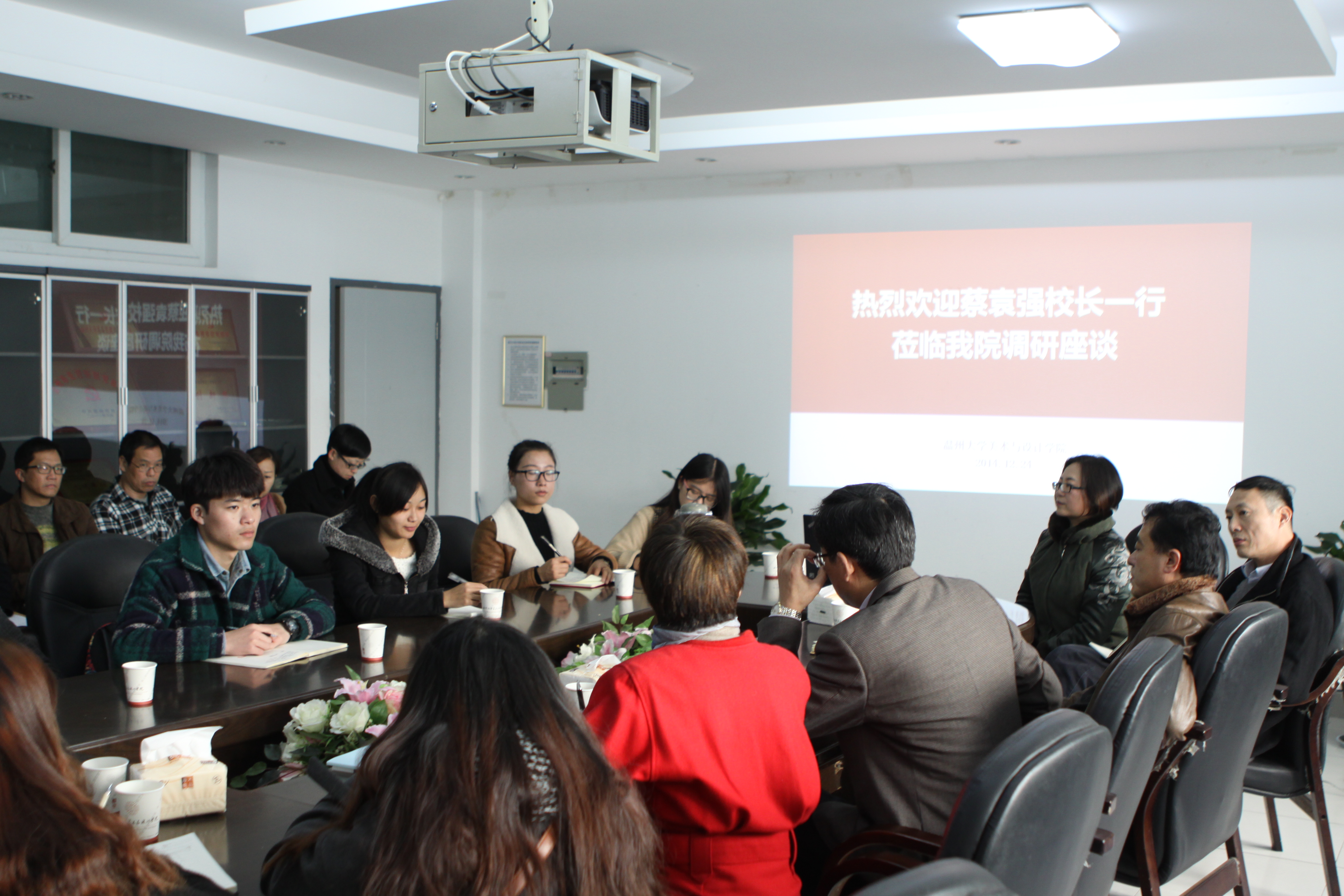 12月24日下午,蔡袁强校长一行莅临beat365英国官方网站调研座谈,座谈会在南校区美术楼2B216召开。出席会议的校领导还有牟德刚副书记、薛伟副校长,党校办、教务处、人事处、学生处、就业处、教师教学发展中心等相关职能部门负责人陪同调研,参加座谈的还有beat365英国官方网站班子成员、各科室负责人以及22位往届毕业生与在校生代表。座谈会主要围绕如何加强教风学风建设、提高人才培养质量与提升毕业生就业核心竞争力而展开。会议由教务处处长施晓秋主持。 座谈会在轻松和谐、亲切交流的氛围中持续进行。学生代表踊跃发言,在校生代表主要围绕如何更好的优化课程设置、丰富学习资源、改善仪器设备、浓厚学习氛围、拓展自习场所、加强实践教学、深化学习效果等问题提出中肯意见,正如一大二学生所说“希望老师在专业教学上,对我们要求再高一点,让我们学得更多一些,当我们毕业走上社会也不会被淘汰。”而毕业生代表则结合岗位历练后,对在校学习的留恋溢于言表,纷纷表示大学时光非常宝贵,希望老师在强化基础知识传授的同时,能结合学科专业发展出现的新知识、新技术、新方法的介绍与及时引入,对增强毕业生的就业竞争力将更有帮助。同时对美院学生日益浓厚的创业诉求,希望学校能在场地申请、创业教育等方面加以更多的鼓励与关怀。 在认真听取学生代表提出的各条意见建议后,蔡袁强校长对美院学子能关注学校发展、关心自我成长所提出的中肯意见与建议表示赞赏,正如他所评价一样,“美院学生的学风好,积极性高,创业氛围浓厚”。蔡袁强强调,学校学院各有关部门要结合学生的发展诉求,特别是多听取往届毕业生的反馈建议会更加有利于学校人才培养方案的完善。结合教学改革,他指出要进一步解放思想,及时认真加以探讨与整改,强调要在新生进校后要及时安排专业导论课加以引导与介绍,对稳定与巩固专业思想,浓厚学风,推进人才培养都非常有帮助。 通过此次围绕人才培养主题与教学中心任务深化的调研座谈,学校领导能来到学生当中,面对面诚恳提取学生的意见建议,对畅通交流渠道、增进师生感情、加强师德师风建设均有实际与深远的影响。