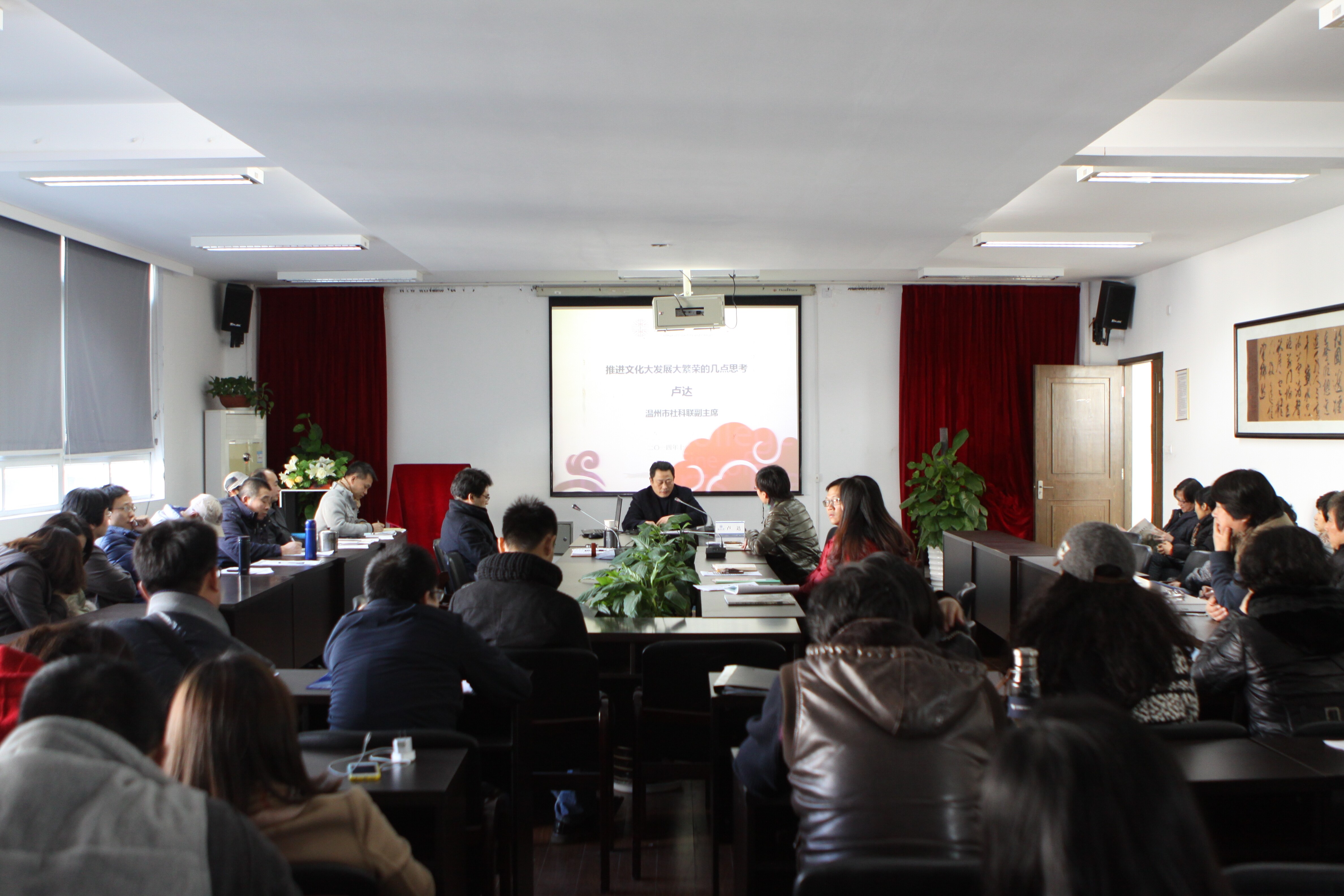 12月18日下午14:00,beat365官网特邀温州市社科联副主席卢达为beat365官网全体教职工做了主题为“推进文化大发展大繁荣的几点思考”的专题讲座。