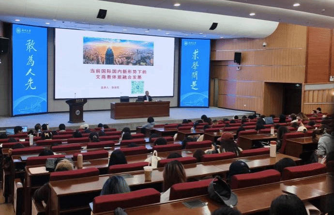 为深入贯彻落实国家文商教体旅融合发展战略,精准对接地方文旅产业发展需求,拓宽学院师生学术视野。4月1日下午,学院在图书馆举办《当前国际国内新形势下的文商教体旅融合发展》专题讲座。本次讲座特邀温州市文化广电旅游局二级巡视员张志宏担任主讲人,学院领导、专业教师及各年级学生到场聆听学习。讲座伊始,张志宏巡视员围绕“国际国内新形势”这一核心开篇,立足全球发展大局与国家战略布局,深入剖析了当前中美关系、中日关系、台海局势及香港问题等热点国际国内议题,帮助师生明晰宏观发展环境、拓宽视野。随后,他系统阐释了经济建设、科技创新与文化传承融合发展的内在逻辑,解读宏观变革对高校学科建设、人才培养的深远影响,为学院服务区域发展提供理论指引。结合beat365英国官方网站的专业特色,张志宏巡视员将理论与实践紧密结合,以浙BA文旅融合项目、“六个温州”文旅品牌打造等典型案例为切入点,深入分析了文商教体旅融合发展的新趋势、新路径,为学院专业建设、师生职业发展提供了方向指引。 互动交流环节,现场师生热情高涨,围绕“设计与乡村振兴的结合路径”“AI技术在文旅发展中的应用前景”“艺术生就业创业的新赛道与新机遇”等议题踊跃提问,与张志宏巡视员展开深入交流。张志宏巡视员耐心细致解答,与大家展开了深入的交流与探讨。此次专题讲座,不仅拓宽了师生的学术视野,强化了师生与地方文旅产业融合发展的意识,助力师生职业生涯发展,更为学院未来的发展提供了宝贵的思路和建议。下一步,学院将以此次讲座为契机,紧扣温州区域发展需求,深化产教融合、校地合作,立足专业特色,推动艺术设计成果转化,将文商教体旅融合理念融入学科建设、人才培养全过程,努力培养更多适应新时代需求、能够服务地方文旅高质量发展的应用型艺术人才,为温州文旅品牌建设注入新的活力。初审 : 谢巍 复审 : 范佩宏终审 : 谢子静