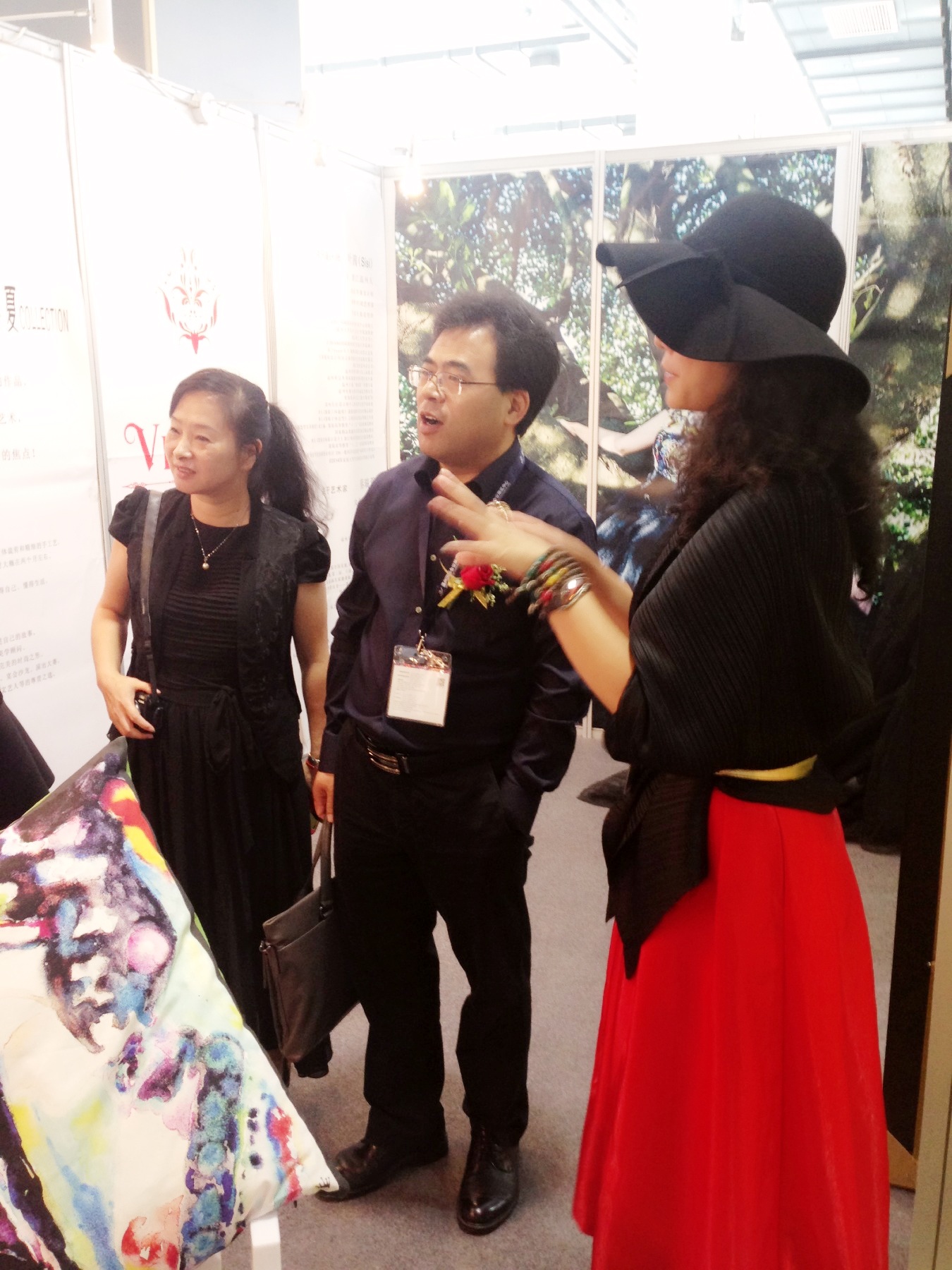 在近日2014温州国际时尚博览会的现场,一个很有特色的展位以惊艳的视觉捕获了参观者的眼球。象画廊、又似戏曲舞台,看似传统却透着时尚,这便是由温大beat365英国官方网站副教授叶茜携手著名画家蔡瑞蓉女士(温大美院教授)的“绝代风华”跨界系列作品。她从艺术作品中提炼画面的视觉,让传统民间皮影文化成为时尚艺术,运用现代数码印花的工艺技术以鲜艳的色彩真实的传递了这一季独具魅力的焦点!本次作品叶茜老师同时结合了指导学生的国家创新创业课题的项目“IN-数码印花创意产品研发工作室”,她与参与指导的叶婷老师一起研究数码印花的工艺和面料效果,并让学生参与图案设计及应用,作品有时装、礼服和家纺等应用产品,在工艺制作上也得到了浙江丽丰服装科技有限公司和杭州宏华数码印花的大力支持。温大beat365英国官方网站院长李运河教授和服装系主任陈明艳教授特意到场观看,并高度评价! 而在首届由浙江省市经信委、温州市人民政府主办、温州市经信委承办的”2014工业设计助推时尚产业发展高峰论坛暨温籍时尚设计超级秀和产业对接会圆满落幕。主办方邀请了香港秀导和DJ、国际超模,各路尊贵的嘉宾和时尚大咖及各大媒体汇聚一堂,温籍设计师与来自香港台湾和全国十佳设计师获得者同台演绎了一次高大上的超级秀场。压轴的依然是vivisisi高级定制坊的创始人叶茜(Sisi)和蔡瑞蓉教授合作的这一系列作品。她们依然坚持民族的就是国际的,秀场上的风格继东又西,外模头戴凤冠,身着印有艺术家作品的皮影图案礼服和旗袍,随着戏曲ruck的音乐节奏和戏曲水墨的背景曼妙出场。而走过巴黎时装周的国际超模张栩嘉走进了我们温州时尚超级秀,气场十足的压轴了绝对出彩的中国风! 时尚一直坚定的天马行空,当艺术穿梭于时尚,传统与现代、东方与西方在一起交融、碰撞中跨界!