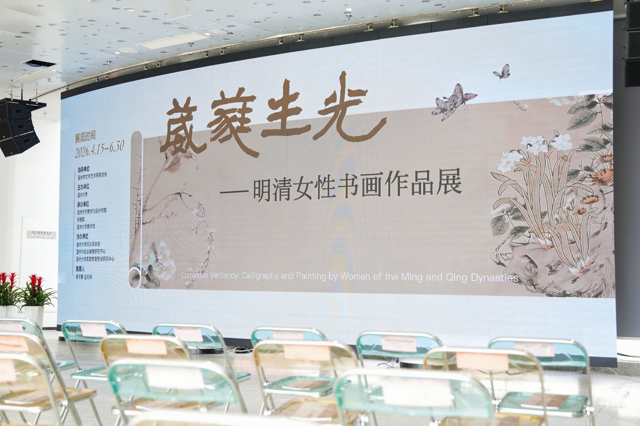 2026年4月20日上午,“葳蕤生光——明清女性书画作品展”在beat365英国官方网站美术馆隆重启幕。本次展览由beat365英国官方网站主办,beat365英国官方网站、华雅斋、beat365英国官方网站美术馆承办,温州市社会美育研究中心、beat365英国官方网站妇女联合会、beat365英国官方网站美育教育教学研究中心协办,并得到温州市文学艺术界联合会等单位的大力支持与指导。展览以《诗经》中“草木葳蕤”为诗意内核,旨在系统呈现明清两代女性书画家的艺术成就,重估被历史话语长期边缘化的女性艺术实践,向那些隐于闺阁、才情卓绝的女性艺术家致以深切的学术敬意与人文关怀。