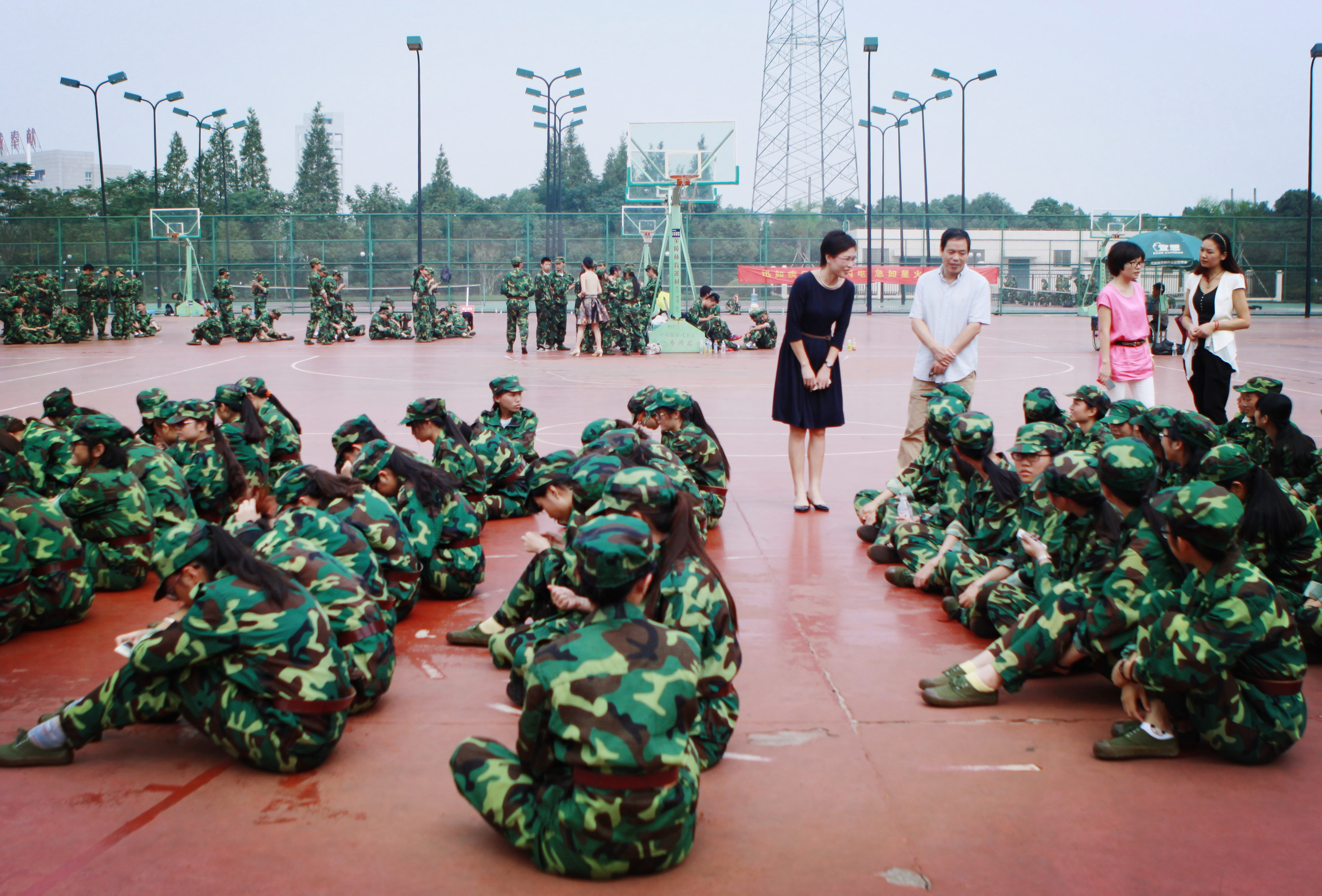 9月26日上午,beat365英国官方网站党总支书记郑彩莲、副院长蔡可群,在院办主任李丽、学生科副科长叶如芳的陪同下,慰问了正在军训中的2014级美院新生。