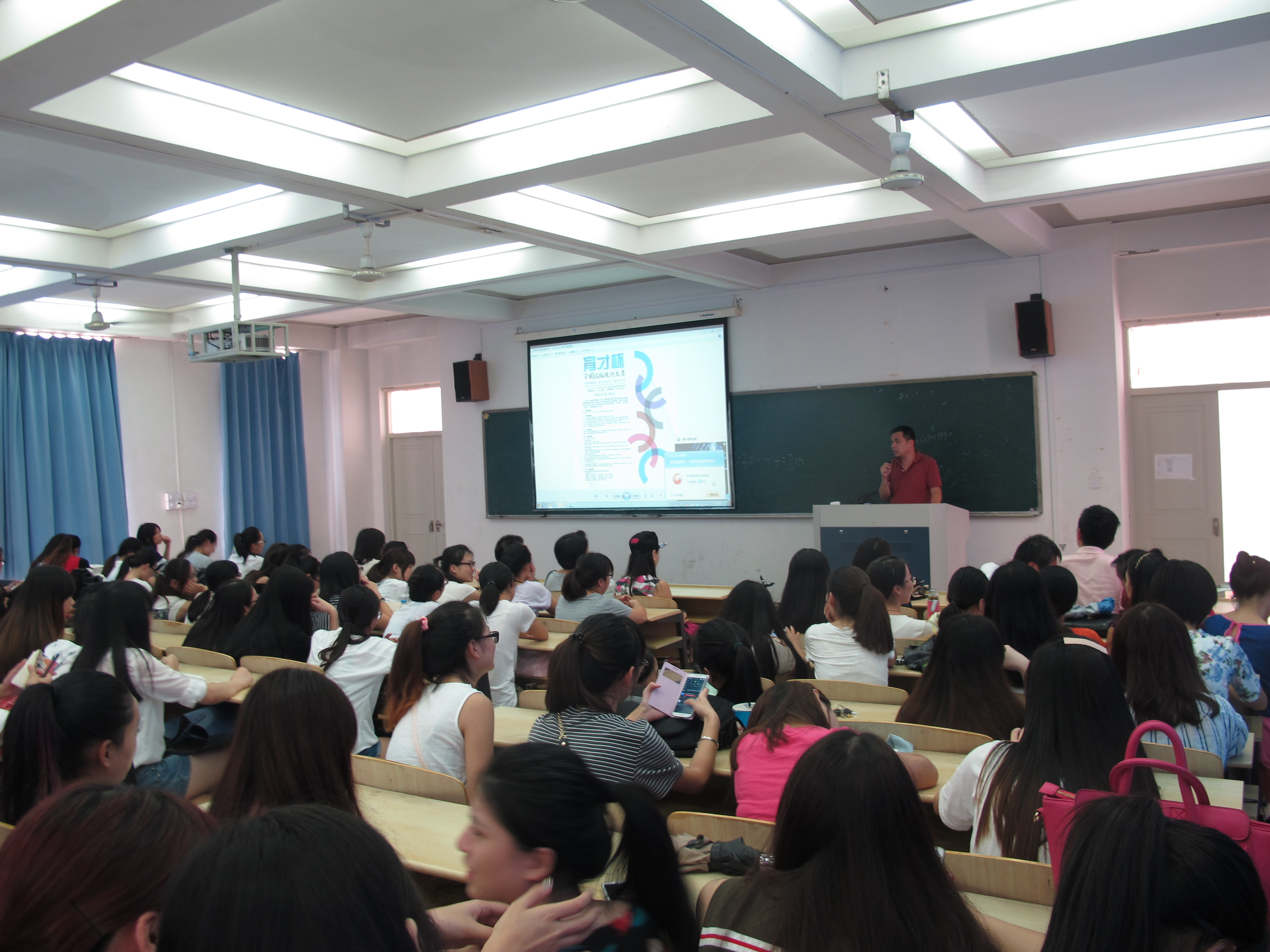 2014年9月28日下午14点,beat365英国官方网站在3A201召开“育才杯”全国校服设计大赛动员大会,学院党总支书记郑彩莲出席动员会,服装系全体师生共200人多参加了此次会议。会议由服装系主任陈明艳主持。