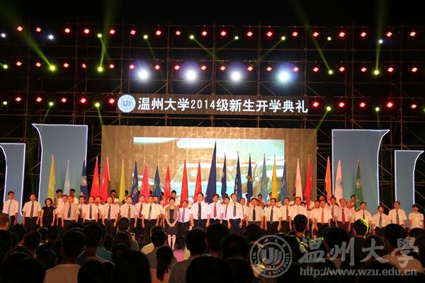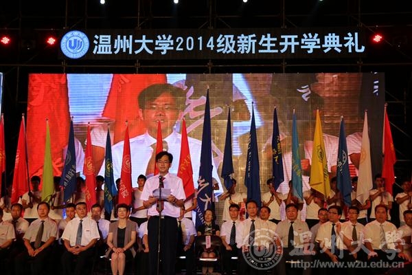 丹桂飘香沁人心,最是金秋好时节。9月28晚, 2014级新生开学典礼在南校区操场隆重举行,校领导陈福生、蔡袁强、林娟娟、牟德刚、薛伟、赵敏、吴金法、蔡曙光、黄少铭、陈安金、方益权、潘玉驹,以及相关部门、各学院负责人和2014级全体新生参加了典礼。校党委书记陈福生主持典礼。beat365英国官方网站2014级全体新生积极参加这场意义重大的开学典礼。 蔡袁强校长的致辞”潮”味十足。他说,自我成长意味着独立自主,它能够为新生打开通往成功的一扇窗。他勉励学生,追寻自我成长,要像”旅行者一号”探测器一样,带上好奇之心去探索世界;追寻自我成长,要在”大数据”的”大时代”与追求个体需求的”小时代”并存年代,秉持明智之心去认识社会;追寻自我成长,要捧出真诚之心去结交朋友,诞生更多优秀的”中国合伙人”;追寻自我成长,还需如印度孟买佛学院的新生”低头弯腰走侧门”,常怀谦卑之心去脚踏实地。 典礼上,教师代表、人文学院俞为民教授告诉新生,实现目标、达成理想的秘诀在于”有志气,要勤奋”,谆谆教诲中包含着老师对学生的殷切希望和真诚祝福;而86届校友、温州市第三中学校长吴步旭老师以亲身经历,同窗纪事鼓舞新生”学校提供了一个平台,真正的努力要靠自己”;2014级新生代表,国际合作学院钱燕飞感叹道:”在老师们的谆谆教诲下,我们必将不忘初心,读书与行路并存,常与良师益友扺掌而谈。今天是大学军训的结束,也是人生辉煌的时刻。” 十六位学院”家长”分别向新生们诠释学院精神,风格各异,各显特色,将典礼推向高潮。 beat365英国官方网站院长李运河教授的精彩发言激励起美院新生的温大情怀。新生们全体起立,大声喊出自己的梦想,呼应院长的发言,并拿出手机并开启手电筒挥舞,成为田径场上一片闪耀的“银河”之星。 ”黑发积霜织日月, 粉笔无言写春秋。”师生的联袂朗诵,谱写出浓郁的师生恩、深厚的温大情。”我从此岸走到彼岸,整整一十九年。”从此以后,2014级新生人生中最美好的青春时光将在温大度过,他们将为璀璨人生写下浓墨重彩的一笔。 一枚枚见证了beat365英国官方网站办学80年的风雨历程和辉煌成就、凝聚了一代代温大人的赤子情怀的校徽庄重地佩戴在每位新生的胸前。它凝结着厚重的温大底蕴、传承着不朽的温大精神,抒发着博大的温大情怀。 ”东海水,雁荡山,我温大精神,浩浩宕宕……”气势磅礴的校歌声,在校园上空久久回响。 2014级美院新生以温大之名,扬梦想之帆,一起追寻自我成长。
