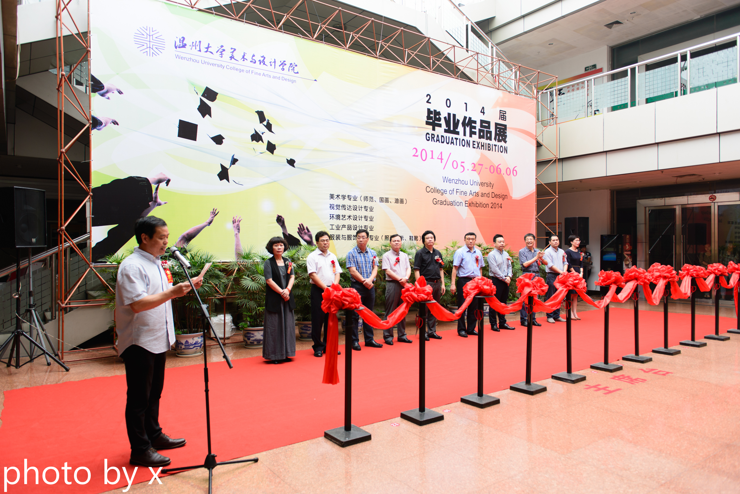 beat365英国官方网站2014届毕业作品展于5月27日在温州市展览馆隆重开幕。beat365英国官方网站副校长薛伟,温州市文联副主席邹跃飞,beat365英国官方网站党委宣传部部长潘玉驹,beat365英国官方网站就业处处长孙广福,beat365英国官方网站团委书记杨立淮,亚厦温州设计院院长、中国建筑装饰学会温州分会副会长胡逸,温州市美术家协会主席蔡瑞蓉,beat365英国官方网站校友分会会长、温州铂尔曼大酒店总裁汤可术,beat365英国官方网站院长李运河、党总支书记郑彩莲等领导与嘉宾亲临现场。beat365英国官方网站副院长蔡可群主持开幕式。