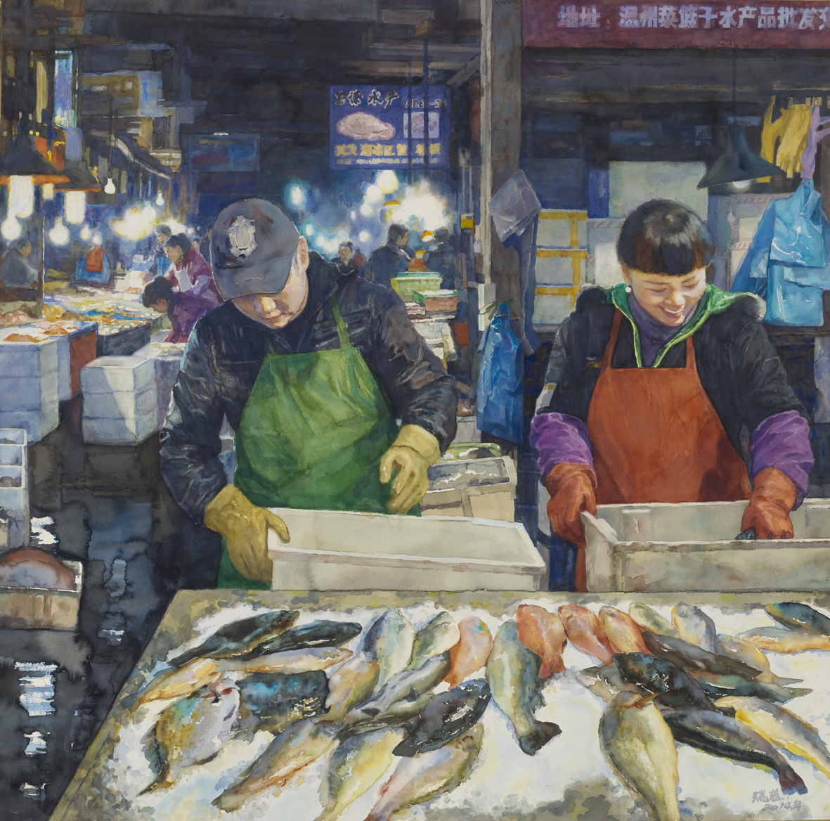 蔡瑞蓉《批发市场》水彩 130cm x130cm