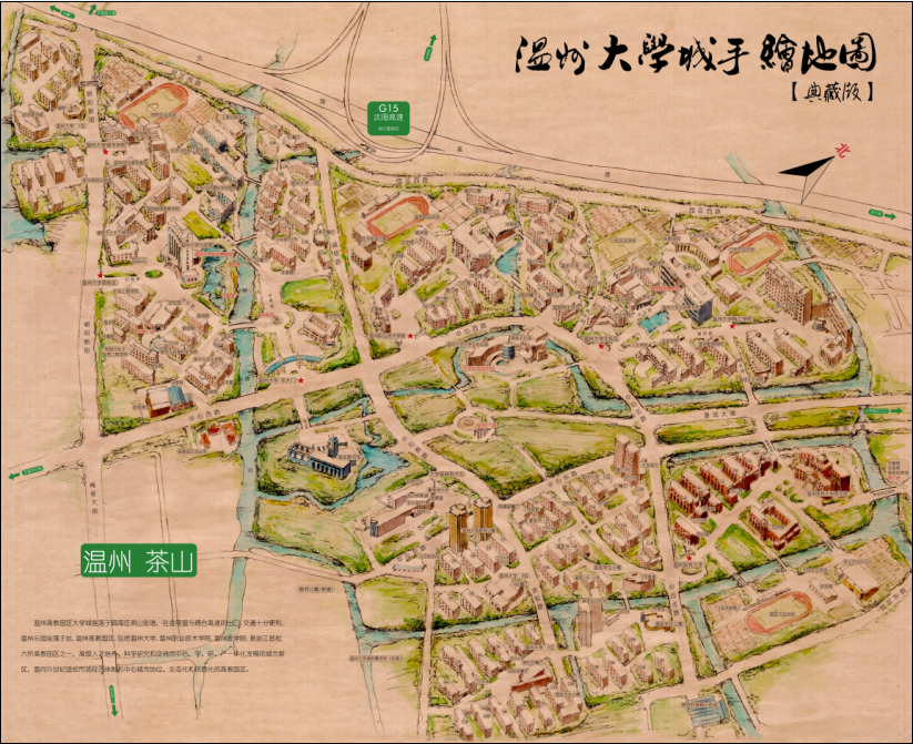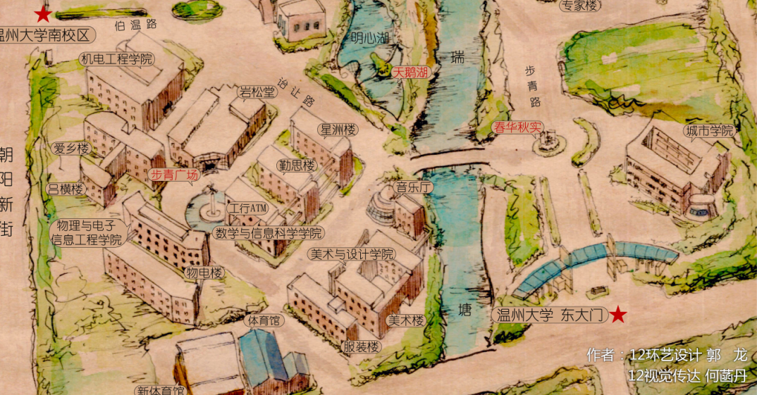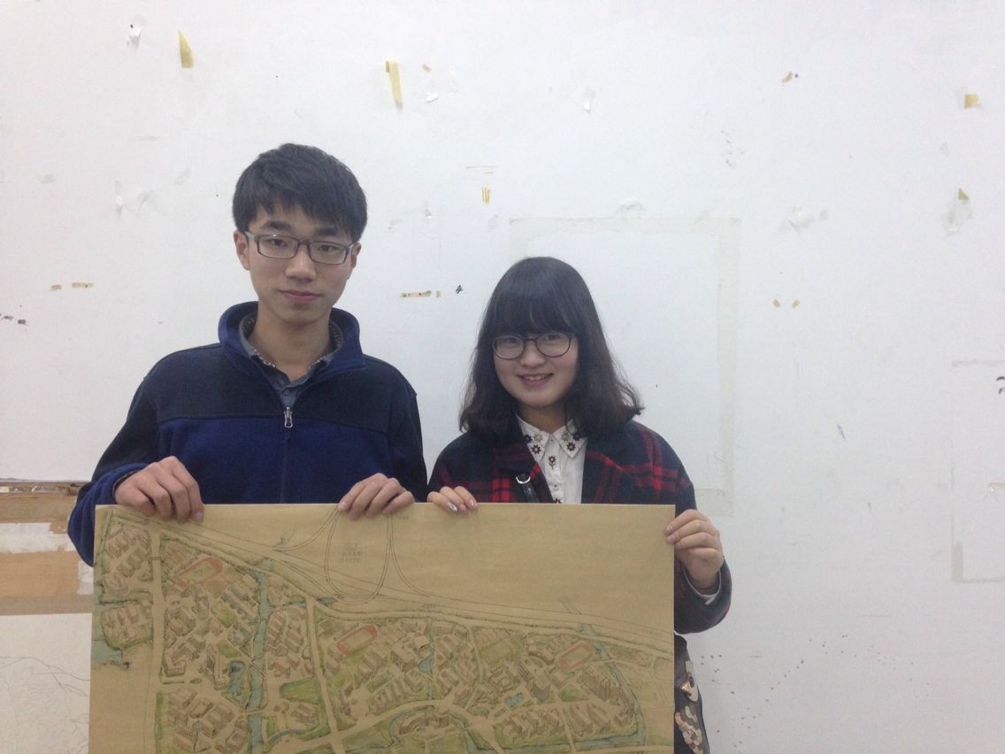 beat365英国官方网站12级艺术设计2班的郭龙和12级艺术设计1班的何菡丹利用课余时间,耗时近一个月,在半开大的牛皮纸上手工绘制了茶山高教园区的大学城全景。 郭龙同学通过查看手机上的平面卫星地图,将记忆中的景观笔墨相融地绘制成了画纸上的立体图形。纵观全图,色调和谐优美,景致轮廓栩栩如生。细看每个局部,立体的建筑形状、灵动的笔墨线条、细腻的水彩痕迹,宛如一件精心雕琢的艺术品。问及两位学生为何手绘地图,他们说:“作为美术专业的学生,能充分结合专业特长,怀抱对学校的感恩之心,融艺术之情于手中的画笔,为大家呈现出学子心中的beat365英国官方网站城是我们一直以来的梦想!” 据悉,两位设计者和周围同学本想将作品申报学校的“挑战杯”项目,现这件艺术品还在最后的调整中,成品将于四月份完美呈现,他们希望能够印制成风格独特的地图,指引更多的学子找到自己的梦想之路!
