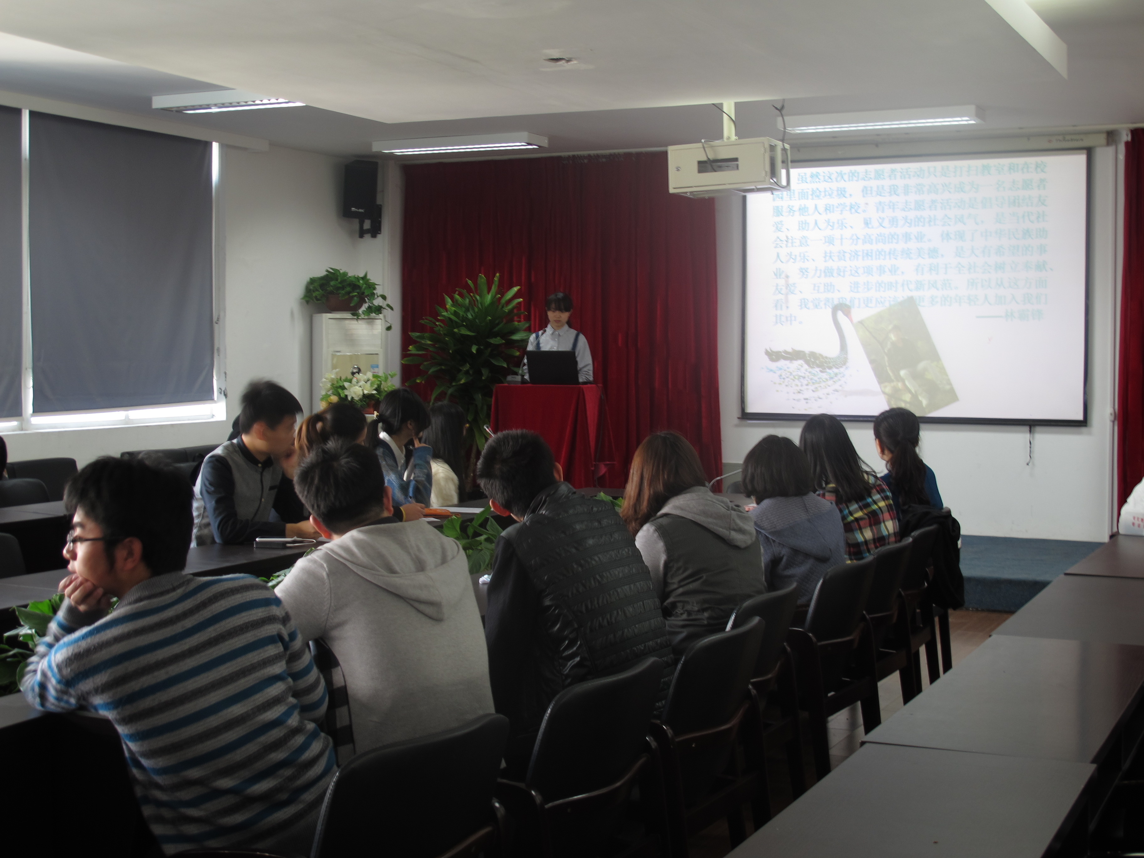 为传承和弘扬雷锋精神,展现当代大学生的文明风貌。3月22日下午,beat365官网“艺家人”青年志愿者协会在2B-4001开展了以雷锋月活动为主题的ppt展示评比,学院辅导员杜茜老师和青协副会长陈周红、冯瑜瑜担任评委参与了此次活动。