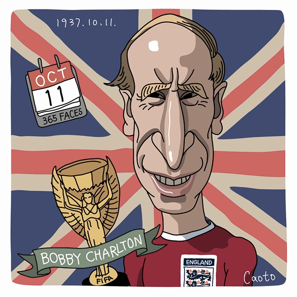 黄容海,毕业于清华大学美术学院,东华大学艺术硕士,beat365英国官方网站讲师。擅长插画及肖像漫画创作。 罗伯特·查尔顿,1937年10月11日出生于阿兴顿的他在17岁时进入曼彻斯特联队。二十世纪六十年代,在他和丹尼斯·劳、乔治·贝斯特共同效力期间,曼联队赢来了历史上的第一个巅峰期。他曾帮助球队三次夺取联赛冠军,一次夺取足总杯冠军和一次欧洲杯冠军。1966年,他随英格兰队夺取了在本土举办的世界杯冠军,那是英格兰队历史上唯一一次夺取世界杯。同年,他当选为欧洲足球先生。他在职业生涯中曾代表英格兰队参赛106场,进球49个。这一进球数字至今仍是英格兰球员为国家队进球的最高纪录。 据说,罗伯特·查尔顿曾于1958年2月遭遇了慕尼黑空难,但幸存下来,并带领球队重新崛起。