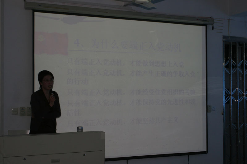 郑书记从互动环节入手,开始本次党课培训,现场要求学员说出自己的入党动机,并予以点评,纠正学员错误的入党动机,引导、鼓励学员树立正确入党动机,随后,郑书记正式开始本次培训,此次培训由三部分组成:一是端正入党动机,郑书记将其分成四个重点:什么是入党动机,入党动机不正确的表现,入党动机不正确的因素分析,为什么要端正入党动机。二是以实际行动争取入党。三是发挥党员的先锋模范作用。在轻松的气氛中,学员们受益匪浅。
