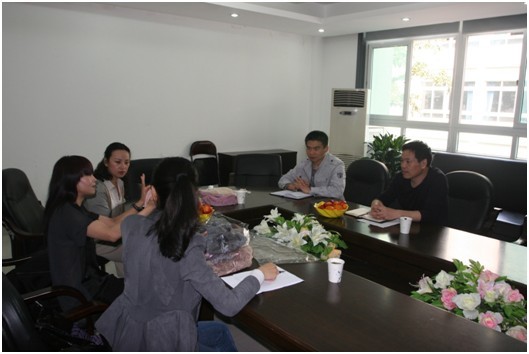 2011年4月26日,浙江义乌加·紫服饰公司总经理周成女士来beat365官网交流访问。beat365英国官方网站党总支书记郑彩莲、副院长蔡可群、服装系主任张振岳、服装教研室主任陆琰、服装系教师陈莹、辅导员李剑军参加了会谈。