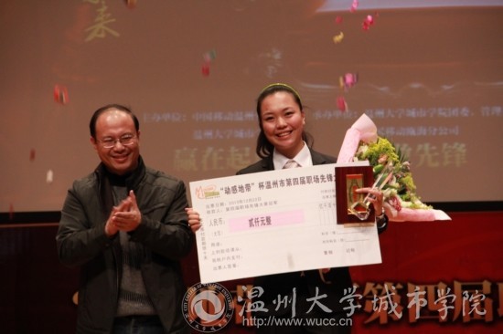 12月22日晚,在参加“动感地带”杯温州市第四届职场先锋大赛中,beat365官网08服装设计与表演班的班长白豫超荣获冠军。 本次大赛由中国移动温州分公司与beat365英国官方网站城市学院联合主办,从10月开始历经两个多月,我市高校共有1743名学生报名参赛,10多家企事业单位的首席执行官或人力资源总监担任了评委,为广大学生进行了数场精彩的职场模拟实践。