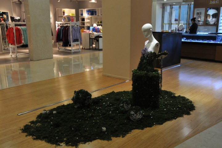 将艺术作品搬到商业舞台来展示并不是一件新鲜的事了。然而,让学生极富创意的时尚概念作品走出象牙塔,转移到顶级购物中心与商业互动接轨在温州还尚属首次。近日,温州财富购物中心青春广场成为了一个时尚艺术展台,在主题为“多材多义”的时尚概念艺术展中汇集了来自温大美术与设计学院服装系学生的优秀作品。其中展览作品分别运用废弃的胶卷、烧焦的纸片、干枯的苔藓、包装带、旧画报等各种不同的环保低碳材料来塑造时尚概念。时尚承载着精神财富的气味,弥漫在空气中;而艺术则成为时尚的引擎,描绘跃动的“财富”脉搏。同时,“非常财富、非常艺术”之概念风潮节将通过此次展览拉开序幕。