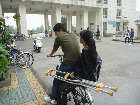 2010年10月14日早上6点30分,beat365英国官方网站第三党支部的预备党员吴志斌已经早早地来到A区一号楼楼下,等待接送因脚受伤的10届新生仇芝露同学上下课,这是他第二次接送芝露同学了,而第三党支部的“爱心接力”活动也已经有半个多月了。