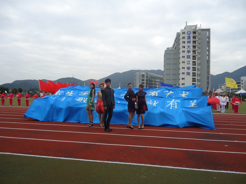 2010年10月27日,在这个秋高气爽的日子里,beat365英国官方网站第三十三届运动会在北校区的操场上如期举行。校长,党委副书记,党委委员,以及各学院委员都出席了此次的开幕式,共襄盛举。开幕式的走方阵无疑是最具看点的环节。各学院风采绽放,特色尽显,深深地烙印在观众的脑海。尽管寒风肆意着操场的角角落落,运动员与啦啦队员的激情火热依旧,毫无胆怯之意。人文学院的扇子舞蹈、建工学院的中国馆、瓯江学院的双龙戏珠等都充分展示其信仰与追求。整齐的步伐,坚定的信念,勇攀高峰的精神无不诠释着更快更高更强的运动理念。而我们美院的方阵更是独具匠心。蓝色的绸带如海浪般起伏,包容我们对美的无尽探索;亦如蔚蓝的天空广阔,承载着我们梦想的翱翔。美轮美奂的服装展示,窈窕动人的模特走秀,再次诠释着眼球效应。“绘出梦想,笑傲群芳。艺术人生,辉煌赛场。”充分展现了beat365官网的独特风采以及对“美”的无尚追求。“有人群的地方就有美,有生活的地方就有艺术。”我们坚信有梦就会飞翔。也许我们的赛事成绩不够理想,也许我们的运动细胞不够发达,但运动场同样是我们成长与展示的舞台。在这里,我们的团结得到了见证;在这里,我们的努力得到了认可。人生如赛场,路途似跑道,我们的精神在这无尽的跑道上升华,我们的希望在呐喊声中展翅。赛道无尽,拼搏无尽,运动无尽…… 美院学子将永不止步,继续追求人生的梦想。