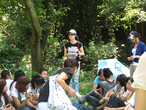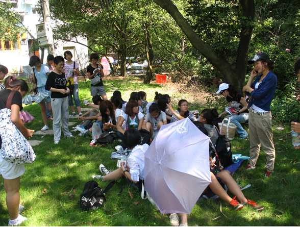 9月23日上午,服装系2010级服装设计2个班的学生在班主任叶茜老师的组织带领下乘坐校车前往仙岩风景区开展“快乐中秋”主题班会。在景区的一块草坪上,大家欢聚一堂,叶茜老师为每位同学在这个特别的日子里送上了一份精美的月饼以表中秋祝福。据叶老师表示,当年其在法留学时过中秋曾感受到的是独在异乡为异客的心情,而现在很希望能给大学新生带来一份大家庭的温暖气氛。 此外,借此活动,还推选了班委,其中由2个班的文艺委员带头预演了迎新晚会的节目,同学们展示着各自的青春风采,度过了大学中的第一次柔软时光。