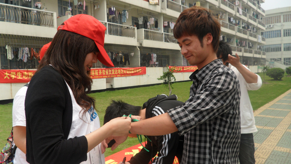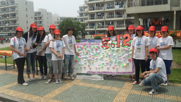 5月12日,两年前的这一天,黑色蔓延。有多少人在一夕之间失去了所有,家、亲人、生命!地震虽已过,但伤痕还在,让我们为那些逝去的人,为那些幸存的人在心中默哀,祝愿他们无论在哪都要健康快乐! 今天11时,beat365英国官方网站“艺家人”青年志愿者协会带领志愿者在温大生活区A区开展了5·12纪念活动。 空中久久环绕着默哀鸣笛声,笛声如幽怨的哭声激起了每个人心中的伤痛。来往的同学和教职工远远看到志愿者们进行的活动,纷纷在活动横幅上签上庄重的一笔,并将自己的祝福写在便利贴上,然后贴在心愿墙上。志愿者们为参与的同学和教职工的手上系上了绿丝带。据说绿丝带寓意“面向未来,充满希望”。我们希望灾后幸存的人在逆境中勇于拼搏,不放弃希望,不放弃未来。温州著名电视新闻栏目《百晓讲新闻》特地前来采访了此次活动,志愿者们希望借此机会将自己的心意通过电视台传达给全市市民,期待所有有心人能够尽绵薄之力帮助那些幸存的人。 此次5·12纪念活动彰显了beat365官网大学生强烈的社会责任感和优良的传统美德,得到了在校师生的良好反响。