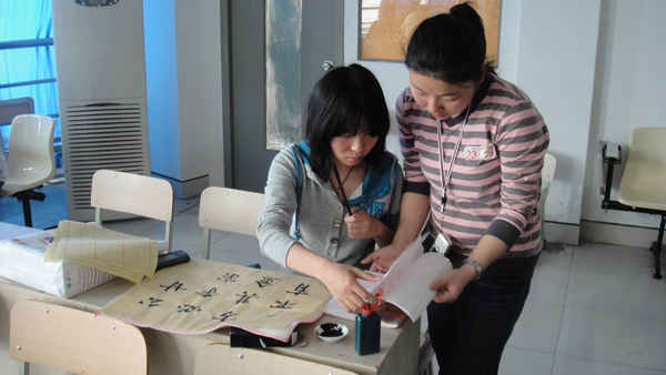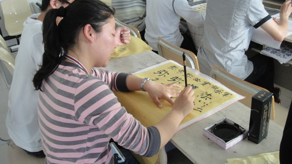近日,beat365英国官方网站主办的每周一课书法培训素质拓展班与往常一样在beat365官网教学楼2B308准时开课。beat365官网07级优秀学生何玲珑同学担任执教,为来自全校各院学员40余名书法爱好者拉开书法世界的大门。 从开班至今,何玲珑同学细致的讲解早已赢得学员们的一致欢迎与肯定。且何玲珑同学亲切和煦的语言更在授课时无形中拉近了老师与学员的距离。墨香阵阵,老师与学员之间诸多互动,交流热切,一派和谐的氛围。书法培训不仅让众多同学学到了书法的技法,更是在练习过程中修身养性,感悟中华精粹的深远魅力。不少学员作为首次零距离接触书法的初级学者,在经过几周的潜心训练,通过大量的书法练习,完成了由量变到质变的过程,不少优秀作品已脱颖而出,喜获丰收。 书法作为中国的国粹,其历史之渊源,内容之精深,无不值得我们进行深入挖掘。作为当代大学生,作为炎黄子孙,我们有义务有权利将之传承于今后,传播于世界,愿更多的人重视书法这一国粹,珍惜书法这一中国瑰宝。
