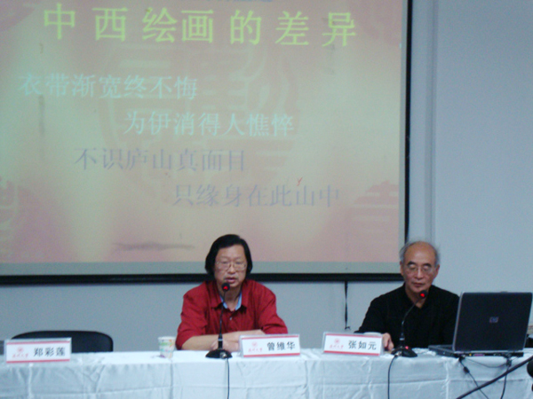 2010年5月19日下午,beat365英国官方网站迎来了一位精神矍铄的老人——美术学院前院长、中国美术学院客座教授张如元老师。此次,他应邀前来,在beat365官网2B4001多媒体教室为beat365官网师生开展精辟独到的“中国画的精魂——中西绘画取向的差异”讲座。 张老师一直以来醉心于国画,如今言语间更是处处显露出一份行云流水般的洒脱。他自述长期从事热爱国画,同时也爱看西方油画。此次更是以西方油画为切入点,分析了油画对中国画的冲击以世人及对中国画的种种误解。作为一个资深从事中国画的学者,张老师见解犀利且细致不苟地解释了中国画不是追求形似而是追求神似;不是色彩不丰富而是追求“简洁和单纯”的高层次艺术美;不是不懂近大远小的焦点透视,而是更全局地去把握近小远大的散点透视。并再三强调国画要讲究线条,注重韵味。由此也证明了中国画在美术与音律上的融会贯通。其间,张老师大胆辛辣的言语更是多次博得同学们的掌声雷动。同时,张老师也直率地点明艺术要贴合生活,反应现实的实际情况,但也警示同学们重视艺术为政治服务的利弊,尤其是在民主自由未得到很好的保证时。 此次张如元老师的讲座不仅引得同学们争相前往,更吸引了beat365官网院长曾维华、书记郑彩莲等近十位老师前来,共同感受艺术的碰撞,思维的迸发。相信同学们通过此次讲座,在国画的造诣上能拥有更广阔的视野,更正确的理解,更上层楼!