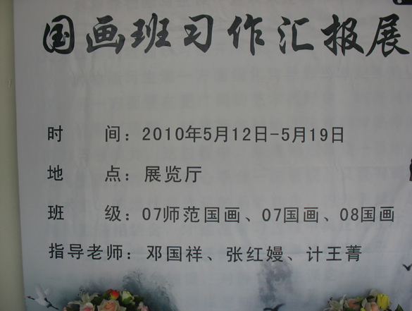 为了检验国画课程的教学效果,真实展示学生专业技能,由邓国祥、张红嫚、计王菁老师指导的07美本(师范)、07国画、08国画教学成果汇报展,于月5月12日-19日在服装楼一楼展厅隆重举行。