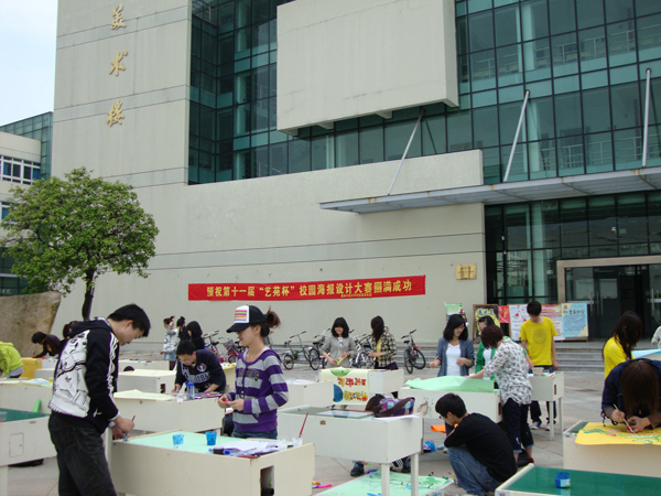 为唤起广大师生的环保意识,呼吁全民低碳生活,beat365英国官方网站团委学生会于4月25日上午9:00在beat365英国官方网站场地成功举办了第十一届艺苑杯之校园海报设计大赛。各参赛小组针对主题进行了海报的设计和制作,活动现场气氛活跃,艺术气息浓厚。