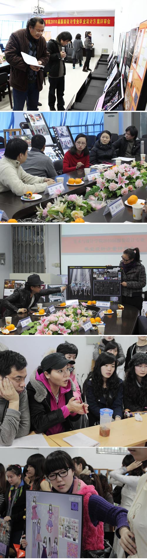3月13日上午,beat365英国官方网站服装系在南校服装楼成功开展了2010届服装设计专业毕业设计评审工作——样衣试装。本次毕业设计的评审委员会由服装设计教研室全体老师组成,到场的有翁小秋老师、张振岳老师、陆琰老师、钟信群老师、夏剑武老师、黄高路老师、陈旭老师、陈莹老师和刘扬老师。服装表演专业的十几位学生担任了试衣模特工作 2010届服装设计专业毕业设计要求学生根据产品使用场合和用途定位进行分类,分组与相关的服装企业合作,依据企业的风格定位或产品计划进行延伸设计,完成从前期调研——设计构思——设计方案——服装作品——作品展示等环节工作。在活动过程中,温州知名服装企业给予大力支持。浙江东蒙制衣有限公司、温州尊尚服装有限公司、温州金诗丹服饰有限公司、嫁日新娘婚纱礼服名店的企业代表担任专家评审会成员,与校内指导老师一起对56位毕业生的设计方案进行了评选。经过一番激烈的讨论及删选后,《解笃》、《JUST NOW》、《蜕变》等30余件作品凭借其完美设计构思脱颖而出,企业专家组给予了很高的评价并表达了赞助意向。 服装设计教研室主任陆琰老师表示:促成毕业设计与企业的合作并通过专家指导,能让学生们的毕业设计作品更贴近市场需求,开发出满足企业应用需求的项目,能有效深化学生大学四年所学的专业理论知识与设计实践技能。在毕业设计过程中设立阶段性的评分选拔,则是极大地培养了学生独立设计创作能力、时间管理能力与各种现代化设计手段的应用能力。相信在学校与企业的大力支持下,通过老师和同学们的共同努力,2010届服装设计专业毕业设计一定能取得圆满的成功