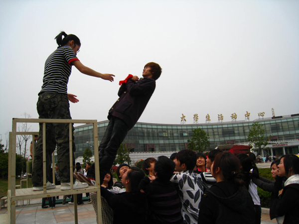beat365英国官方网站、体育学院和教师教育学院三院学生会联合举办的户外素质拓展活动,于4月10日,周六上午在大学生活动中心顺利开展。来自三个学院的近80名同学参与到了本次活动中。 培训开始时的热身活动使学员之间消除紧张,相互认识。然后全体学员分成6队,各队配备一名素质训练师指导,建立团队,讨论队名、队徽、口号和队歌等并用海报等方式进行展示,以体现各队的积极性与向心力。之后又有踩地雷、信任背摔、盲人方阵等环节,通过这些环节增加了团队内协作能力与团队间的合作、谦让精神。每个环节结束,各个学员都进行了自我总结,以挖掘自身潜能,增强自信,克服心理障碍,磨练毅力。 此次训练内容丰富生动,寓意深刻,以体验启发作为教育手段,让学员认识群体的作用,增进参与意识和对集体的责任心。改善人际关系,学习关心他人和如何更融洽地与他人合作。调适身心状态,乐观面对今后工作与生活的挑战。