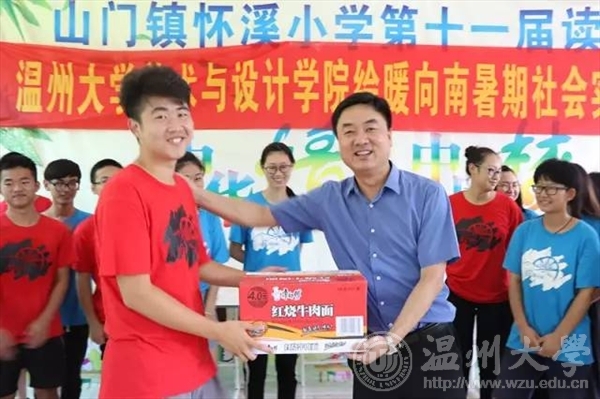 7月15日上午,校党委委员、副校长钱强在校团委副书记魏一、美院党总支副书记杨振海、校团委办公室成晓等陪同下,专程赴平阳县怀溪镇中心小学亲切慰问beat365官网“绘暖向南”暑期社会实践队,怀溪镇委书记金建辉陪同慰问。慰问会由学院党总支副书记杨振海主持。他简单介绍领导和实践队的日常工作和实践历程后,由实践队队长许雷介绍主要开展的两项志愿活动——墙绘和支教。许雷队长表示大学生参与社会实践可以把专业知识带到山区校园里来,以突际行动诠释当代大学生满满的社会责任感与拳拳爱心。鲍彬彬同学谈到“绘暖向南”实践队的名称,就是传递爱,奉献我们的爱,创造出一支好的团队,继续传承下去。能够用自己的专业美化校园,用心地去教导孩子们。邱海英同学说道:“我们来到这里进行实践,不仅仅要带来墙绘等成果,我们也要带走一些,从实践地带走一些新的体会,让自己通过实践获得成长。”副校长钱强谈到“走基层,体验社会,观察社会,去培养我们的社会责任感,才是有意义的实践,这些深切的生活体验,我相信一辈子都会记得。”接着,副校长钱强也与队员们深入交谈,建议实践队到更艰苦的地方去,把美与爱留在了实践地。对团队的分工协作,团结意识,适应能力表示了赞扬。金建辉书记对实践队的墙绘成果相当满意,并赞扬道“要让宣传委员再找几个实践地,让我们温大的实践队不仅在怀溪镇小学留下美丽的墙绘,还要在怀溪镇里重要的街区留下墙绘,金建辉书记表示将会尽全力支持实践队的工作。 学校领导在百忙之中,抽出宝贵的时间前来慰问实践队队员,带来了许多欢乐与安慰。作为一支吃苦耐劳、积极向上的实践队,事必躬亲的确很累,但是也收获到了满满的爱,每一个阶段都收获良多。