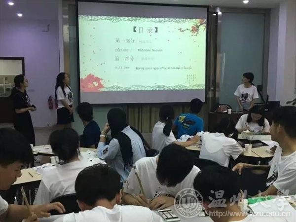 2017年7月8日,为了让更多的外国友人了解中国文化,“鞋蕴”暑期实践队邀请外国友人前来鞋靴实训中心104,参加“鞋蕴——中国传统文化”活动。中华文化博大精深源远流长,大家齐聚一堂以口交流以手实践,思维的碰撞中中华文化得以弘扬。