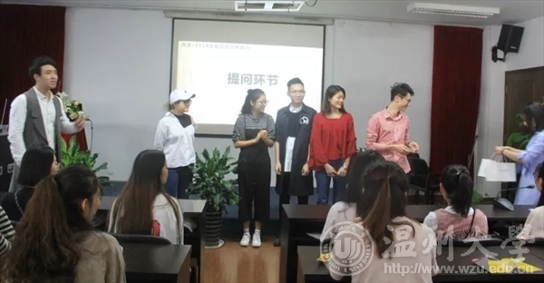 10月18日上午,2018风笛服饰全国校园招聘会温大站在beat365英国官方网站2B4001举行。风笛公司总经办主任杜强、招聘人事主管林赛赛、beat365英国官方网站总支副书记杨振海、学生科副科长叶筱卉和2018届毕业生参加本次会议。本次宣讲会,拉开了2018风笛服饰全国校园招聘会的序幕。从2009年第一次温大宣讲会以来,至此已经9个年头,多少莘莘学子迈出校门,走进风笛,谱写人生崭新的篇章。