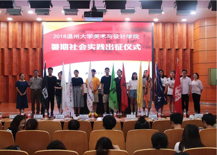 2018年7月4日下午,由美院团委学生会学术实践部举办的2018年暑期社会实践出征仪式在雁山厅隆重举行。出席此次会议的有beat365英国官方网站党总支副书记杨振海老师,蚂蚁行动实践队指导老师许丽慧老师,艺韵晚霞实践队指导老师胡文超老师,绘暖向南实践队指导老师叶筱卉老师。 大会首先由beat365英国官方网站实践负责人付秋圆同学介绍2018年实践队基本情况和实践注意事项。2018年beat365英国官方网站共十支实践队,三支校级品牌提升项目,三支重点团队和四支一般团队,其中八支队伍都是美院传承了多年的队伍,当然今年也有两支全新的实践队。接下来是蚂蚁行动实践队代表发言,蚂蚁行动是成立于2014年,他们从温州前往云南迪庆藏族自治州进行支教,期间曾为当地村民解决了农产品滞销问题,进行了科普宣传和义诊,还建立了蚂蚁行动图书馆,蚂蚁行动今年也将带着这份责任,再次前往美丽的彩云之南,开始2018年暑期社会实践活动。大会第三项议程,beat365英国官方网站学院党总支副书记杨振海书记讲话,杨书记提到实践队外出实践团队意识.形象意识等方面的重要性,同时也对各个实践团队寄予了期望。接下来是全体宣誓,由2018年暑期社会实践学生代表李树鹏同学领誓,全体同学宣誓。 最后杨书记为参加本次社会实践的10支队伍授旗,并集体合影留念。