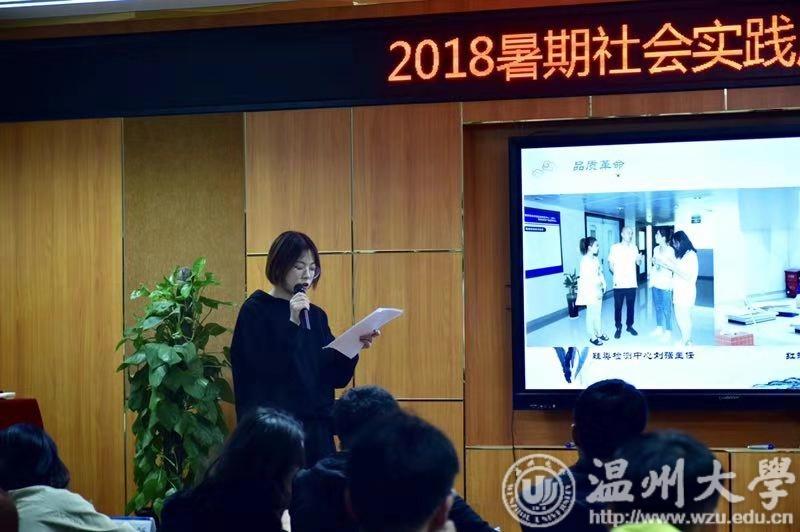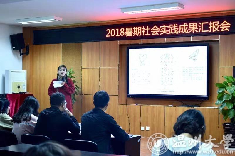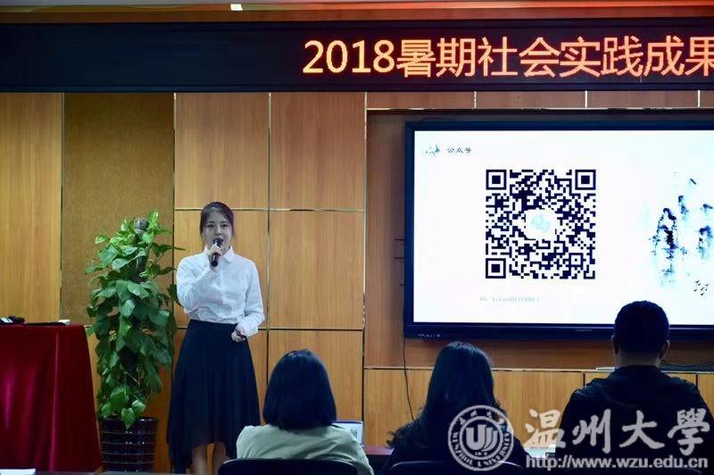 会议第一项议程是成果展示,首先上台展示的队伍是“同爱同行实践队,队员们来到了利宝特殊学校进行支教活动,为这群可爱的特殊儿童带去温暖,和他们一起上课,做手工,一起画墙绘墙绘等等,接下来上台展示的是魅力工艺实践队,他们参观了南戏博物馆,温州工艺美术大师楼等艺术馆,体验了瓯绣,鸥窑,剪纸等古典手工艺,并进行了爱心义卖活动和亲子活动。第三支是艺绘实践队,他们来到了乐清市中心幼儿园进行了长达80米长墙的各类3D以及平面墙绘,并和孩子们一起绘制了T恤。然后是艺韵晚霞实践队,详细展示整个实践活动的工作过程。接下来是绘暖向南实践队,他们一行人来到了一所山里的希望小学,让他们去了解外面的世界,为他们画墙绘,一起做手工。接着是“鞋蕴传承实践队,他们以鞋靴为载体结合专业技能知识开展社会实践和文化建设,并得到了鞋企的大力支持。晞浔实践队,他们前往各个古镇进行考察,到当地进行走访调查,了解当地风俗文化,并从中体会来自古人的伟大智慧,提升审美。然后是“蚂蚁行动实践队,他们来到了山中为孩子们带来了鞋子,给他们做体检,义诊等等,收获了感动体会了真情。最后大手牵小手实践队,他们到京山村社区支教,到南白象公寓看望老人。