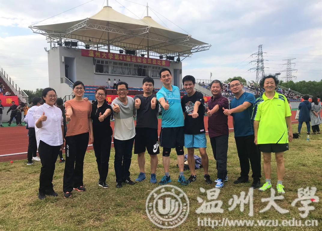 beat365英国官方网站第四十一届运动会于10月25日在北校区体育场隆重召开。在以丰富教职员工生活增强教职员工体质为主旨的教工运动会上,beat365官网老师们积极参与、同心协力,在诸多项目上取得了好成绩。 早在本届教工运动会前,学院班子和院工会成员认真组织联络各位参赛老师,大家提前到场积极备战,针对不同的项目进行了有针对性的训练。个人项目方面,邱彩萍老师在女子丙组持物跑项目上取得了全校季军的好成绩。集体项目更考验全体参赛老师们之间的默契和协调性。在集体跳绳项目上,经过全体参赛老师的努力,beat365官网最终取得了全校第6名的可喜成绩;极富趣味性的“毛毛虫竞速”比赛中beat365官网教工队取得了小组第一;而在10x80米接力跑项目中,杨振海副书记更是发挥领导带头作用亲自披挂上阵,赢得了观众席上beat365官网学生助威团的一片加油喝彩声。由于beat365官网教职员工在比赛中表现出来的良好精神面貌,被组委会授予“体育道德风尚奖”! 在运动中老师们锻炼了身体、增强了集体凝聚力、向心力和集体荣誉感。最后,运动会在欢乐愉快的气氛中结束。