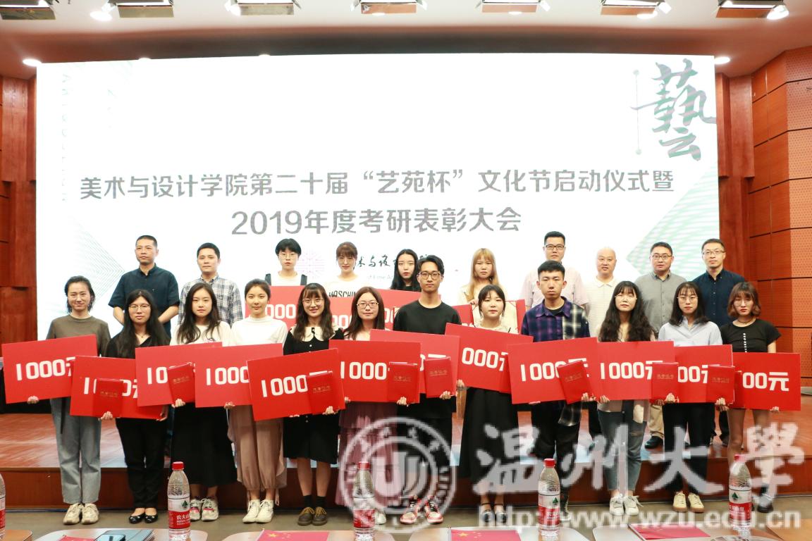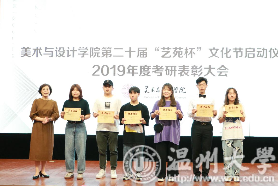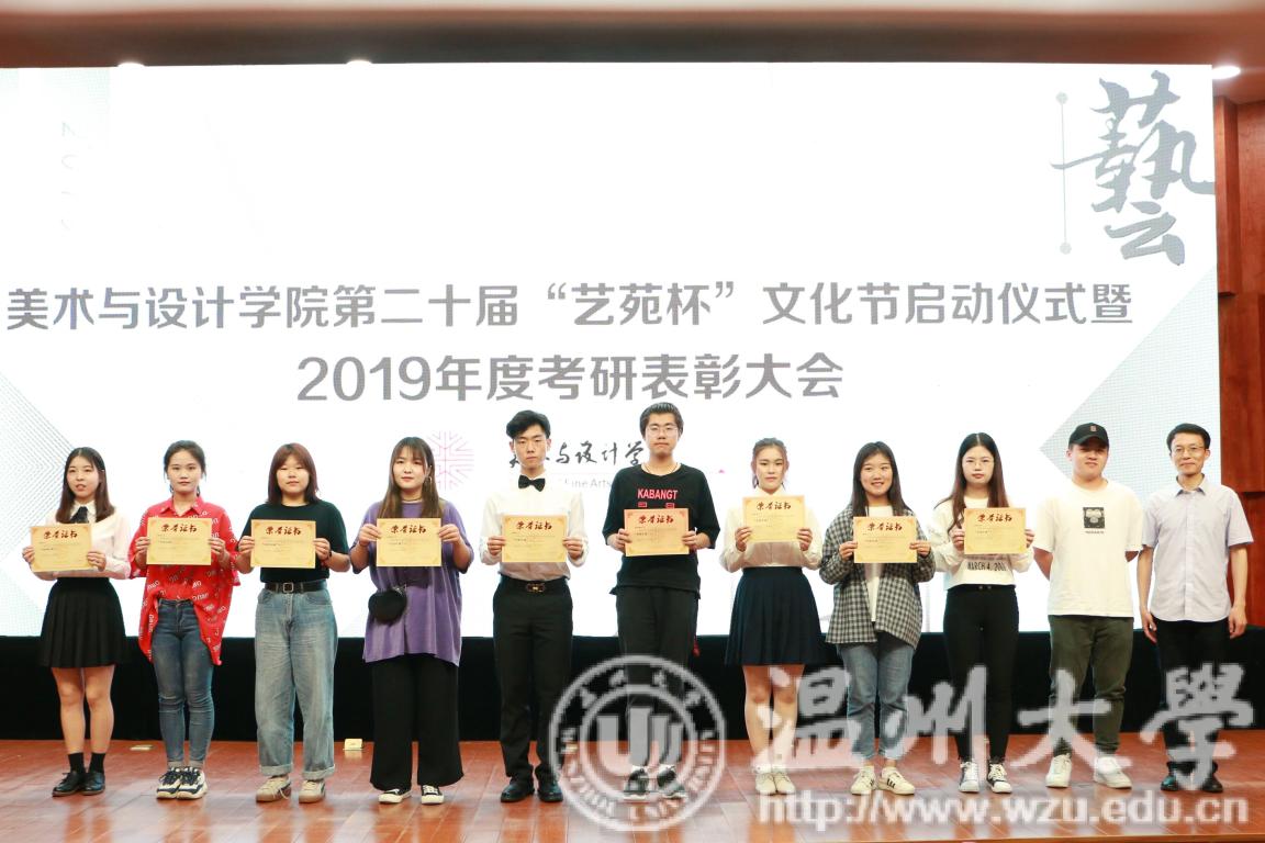 2019年4月24日下午,beat365英国官方网站第二十届艺苑杯文化节启动仪式暨2019年度考研表彰大会在岩松堂雁山厅顺利举行。莅临本次启动仪式的领导有校党委宣传部副部长冯方盛,校教务处副处长胡瑜,校学工部副部长、学生处副处长高红星,校就业处副处长应中,校团委副书记魏一,超豪学区党委副书记李祖祥,beat365英国官方网站院长李运河,党总支书记张丽萍,副院长张晓剑。参加本次活动的还有beat365英国官方网站17、18级同学。启动仪式由美院党总支副书记杨振海主持。本届“艺苑杯”文化节的主题“艺梦为马·不负韶华”源自海子的著名诗篇《以梦为马》,寓意美院学子将艺路梦想作为前进的方向和动力,在有限的年华里为梦想去拼搏。系列活动包括纪念“五四运动100周年”;传承中华优秀传统文化;“融艺优品”创新创业;“艺家人”青年志愿服务;“毕业季”;纪念“庆祝中华人民共和国成立70周年”等6大篇章共34个子活动。启动仪式的开场是“五四”主题诗朗诵《青春的火焰》。充满爱国激情的诗歌表达了对100年前五四运动的深切赞颂,激昂的文字让同学们更深切体会到了五四运动的爱国主义精神内涵,进一步增强了同学们的时代责任感和使命感。张丽萍书记为启动仪式致辞。张书记回顾了“艺苑杯”文化节自2000年创办以来不断发展壮大的历程。“艺苑杯”文化节不仅营造了积极向上、健康文明的校园文化氛围,更成为同学们在实践中锻炼自我成长才的重要平台。张书记鼓励同学们积极参加到“艺苑杯”文化节各项活动中,用激情去创造,用行动去证明,用精品去展现,共同谱写青春绚丽多彩的乐章。仪式最后,与会领导上台共同启动beat365英国官方网站第二十届“艺苑杯”文化节。会议第二项议程是学风表彰。大会宣读了2018年度beat365英国官方网站“五班十星”名单和2019年度beat365英国官方网站“考研奖学金”获得者名单。2017-2018学年校级学习标兵陈晨,2019年度美院“考研奖学金”获得者代表15服工班杨怡洁、15美术学一班聂枭雄分别做学习和考研经验分享。2019年beat365英国官方网站共有16人考取研究生,16人中有5人被浙江理工大学录取、6人被beat365英国官方网站录取、1人被杭州师范大学录取,还有4人被国外的大学录取。与会领导为他们颁发了奖状和证书并合影留念。随后,李运河院长作考研动员讲话。他指出了本科阶段学习与研究生阶段学习的不同,并引用毛泽东、曾国藩、习近平总书记等名人轶事鼓励同学们以考研成功的学长学姐为榜样,树立以学习为本的理念,任何时候都不要放弃学习,多读书,读好书,勤实践,多游学,珍惜大学时光,珍惜青春韶华,学好专业知识,实践专业技能,强健体魄,刚强意志,努力奋斗实现人生梦想。最后,为迎接祖国70华诞,全体师生手中挥动国旗,共同献唱《我和我的祖国》,大会圆满结束。
