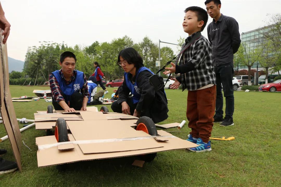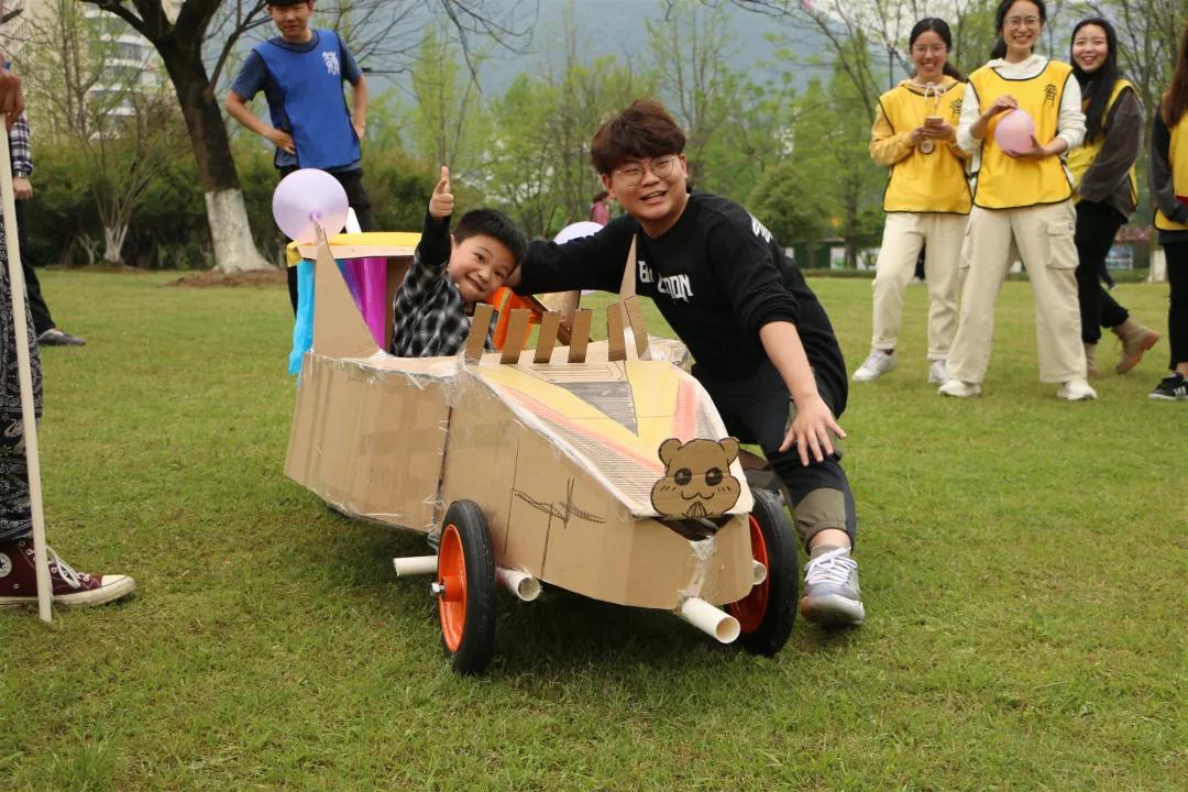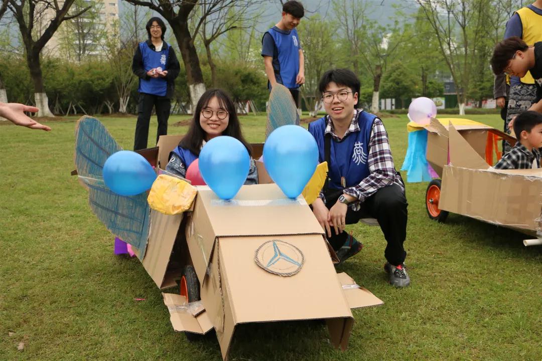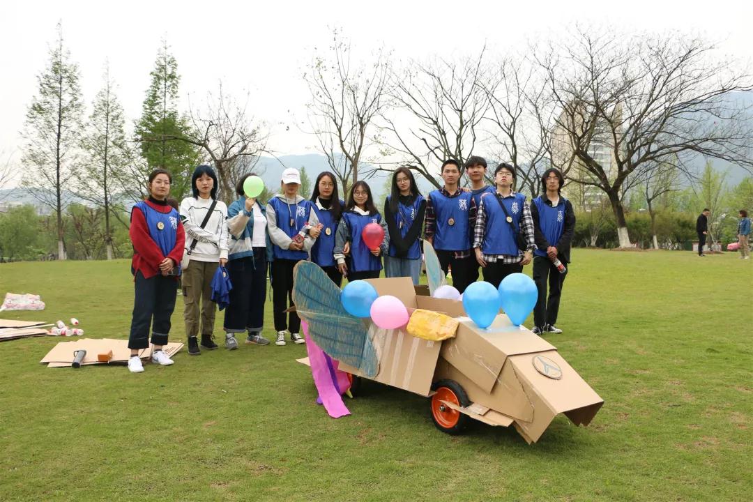 经过两个多小时的制作,在拼拼合合、缝缝补补中三个队的车子都顺利完成了,每个队的车子都各具特色,外观绚丽的同时又十分牢固。最后三队分别介绍了自己的车子并经过竞速抉择出第一名。都说团结力量大,干事们在此次活动中深深的体会到了这点。