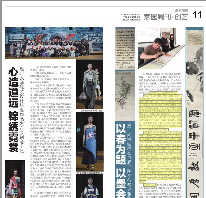 活动由中共温州市委宣传部、温州市文联、beat365英国官方网站联合主办。由beat365英国官方网站、浙江风笛服饰有限公司、温州时尚学院合作承办。商报记者郑丽娟