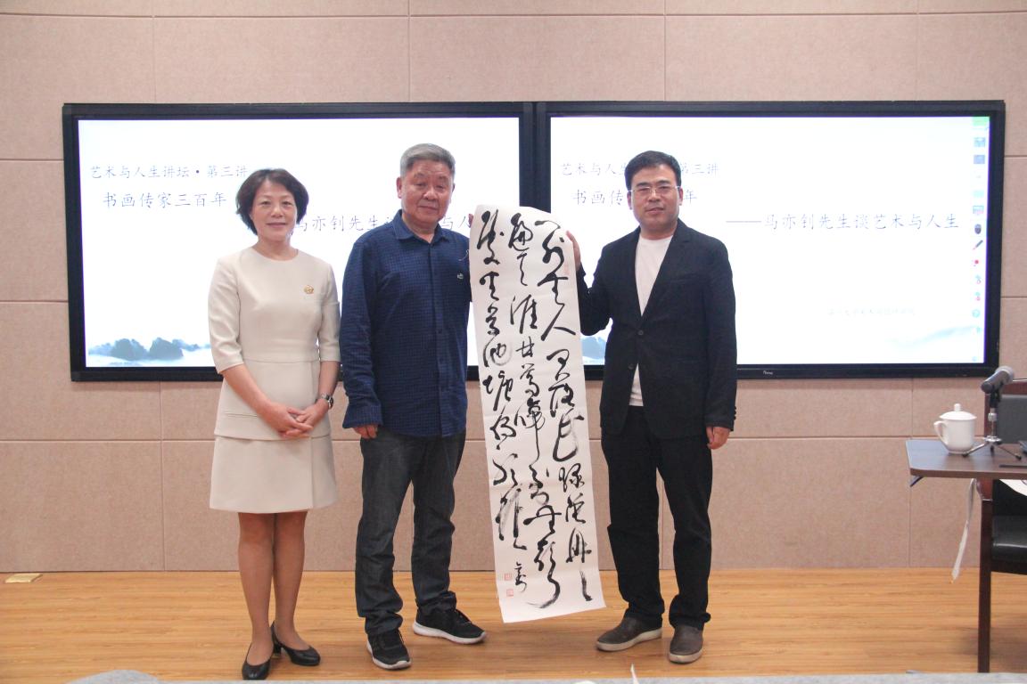 5月22日下午,由beat365英国官方网站党委宣传部与beat365英国官方网站联合创办的《艺术与人生》大讲坛第三期在岩松堂叶适厅举行。本期讲坛由beat365英国官方网站退休教师马亦钊教授主讲。beat365英国官方网站院长李运河、党总支书记张丽萍、副院长谢子静、副书记杨振海以及学院部分师生参加本次活动,同时来自学校各部门与单位的教师代表、留学生代表也来到现场。本期讲坛由副院长张晓剑主持。 马亦钊老师是原beat365英国官方网站艺术设计系主任,在beat365英国官方网站工作多年,见证了学院的发展壮大,培养了大量的书画人才,可以说“桃李满天下”。现担任浙江省文史馆馆员、西冷印社社员、中国书法家协会理事、温州市书法家协会顾问等职。作品多次入选国内外重大展览并在报刊发表,被收入书法篆刻作品专集,出版《马亦钊书法篆刻集》。 马老师出身“书画传家三百年”的马氏家族,马老师娓娓道来,讲述了家族的传奇。百里坊马氏家族,自明末清初以来,十几代人不懈砥砺,文风昌盛,业绩惶惶,蜚声国内外。其中马亦钊老师的祖父马孟容、叔公马公愚昆仲最为出类拔萃,他们深受文艺界前辈蔡元培、吴昌硕等欣赏,被人誉为“马氏双璧”,是后期海派文化的杰出代表。 马老师分享了马家收藏的马蔚霞的行书对联、马孟容的墨蟹作品、马公愚的楷书《正气歌》、朱自清致马公愚函、马公愚致马亦钊函、马亦钊行书手卷《月朦胧,鸟朦胧,帘卷海棠红》等作品背后的故事。透过这些作品和故事,我们感受到的不仅仅是艺术修养的传承,更重要的是精神境界、家国情怀和民族气节。 “书画传家三百年,一脉相承到如今”作为温州文化家族世代传承的典型,马家也世代致力于推动家乡文化教育发展。透过马家“学有所长服务社会”的家风家训以及家族文化传承的故事和心得,师生们体会到的还有其中传递着的生生不息的“传家风、讲文化、铸温州气节”的人文精神。 讲座结束后,马亦钊老师现场挥毫泼墨,创作出一幅精美的书法作品赠送给beat365英国官方网站,李运河院长和张丽萍书记接受赠送并做答谢。 书画传家三百年 温州马氏家族传家宝登陆央视(视频)