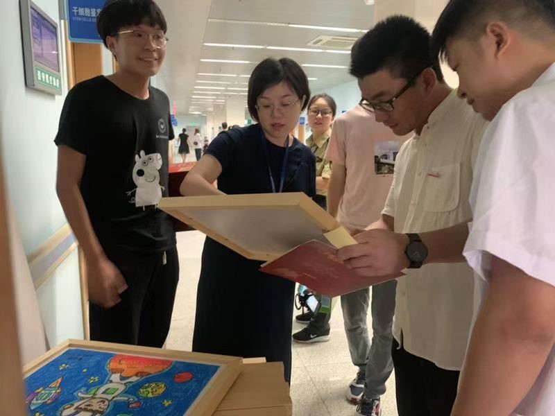 刚到医院,胡院长一行受到了温州医科大学附属第一医院团委书记尚蕾蕾、血液内科余志杰博士的热情欢迎。随后在医院团委书记的带领下,胡院长参观了门诊大厅的巨幅浮雕、爱心献血屋及爱心书屋地带,胡院长被此处的摄影绘画作品所吸引,通过交流,胡院长和尚书记期待未来更深层次的合作。