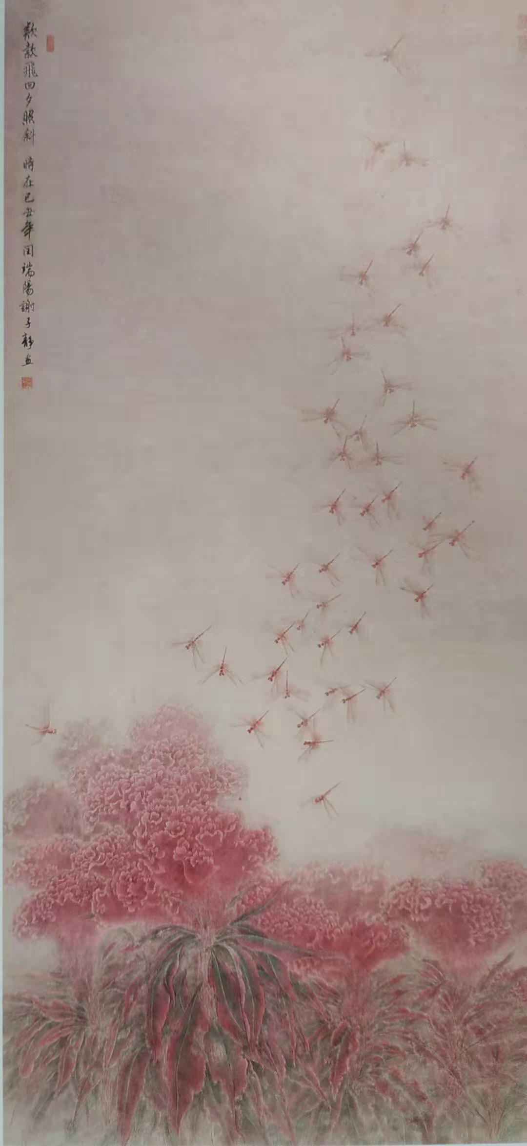 谢子静:《款款飞回夕照斜》中国画
