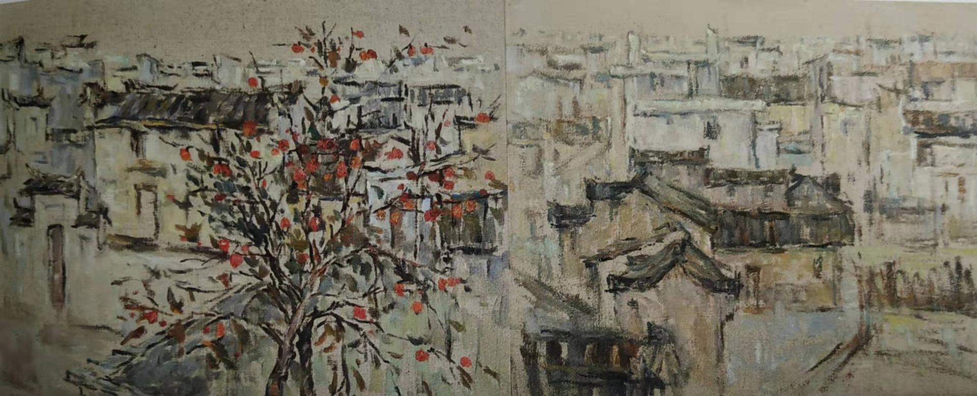蔡可群:《柿子正红》油画