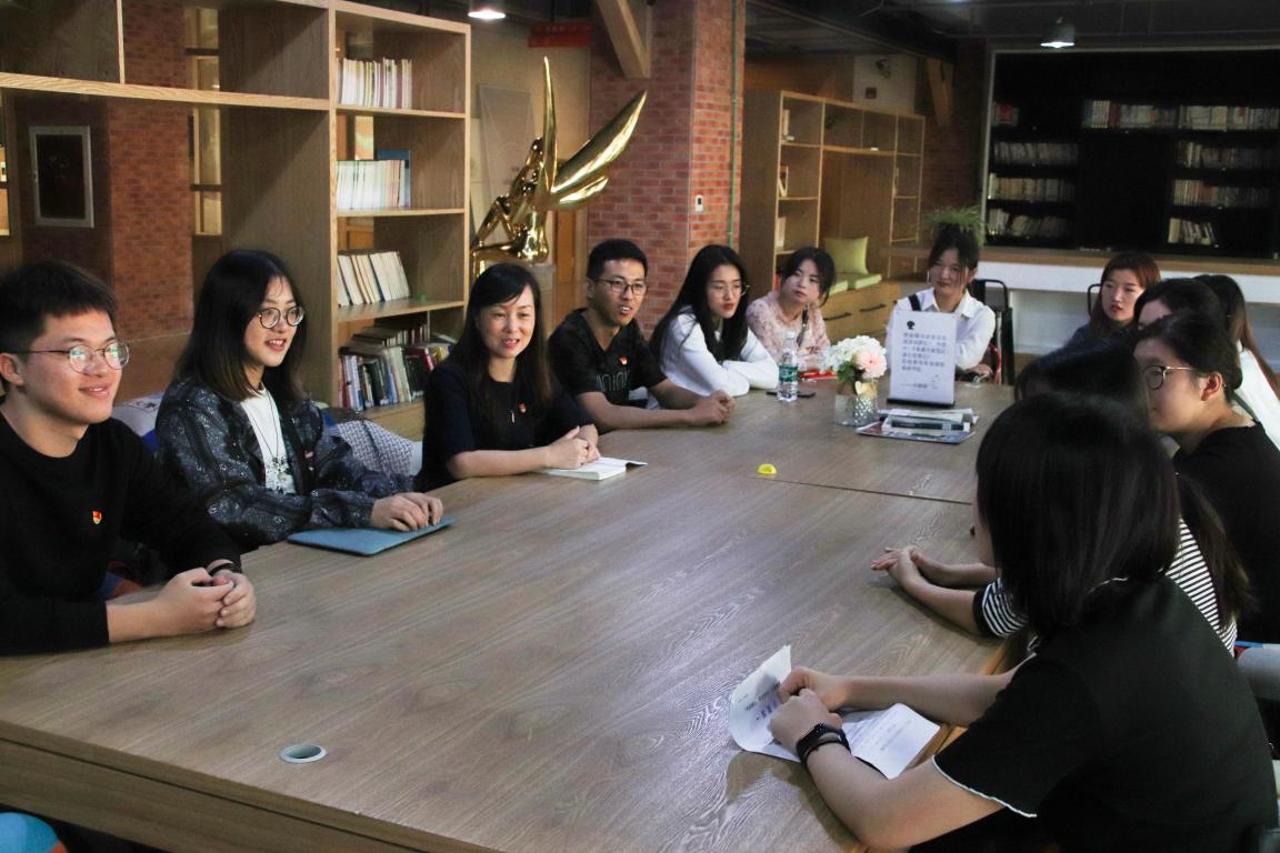 10月20日下午,beat365英国官方网站党委副书记杨丽君和学工办辅导员王颖带领学生党员到红蜻蜓集团开展“不忘初心、牢记使命”主题教育,并就主题教育第一段工作进行总结交流。