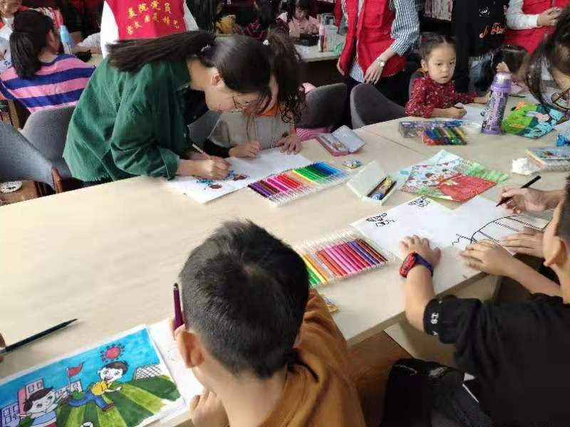 2019年10月20日,为切实把“不忘初心、牢记使命”主题教育学习成果转化为担当使命的生动实践,美院学生党员结合专业特色在高教博园图书馆开展了“手绘迎亚运、照亮新青年”的公益活动。亚运会是亚洲地区的综合性运动竞赛,也是亚洲体坛最大的盛会。此次杭州亚运会举办之时适逢中国共产党建党一百周年、中国全面建成小康社会的重要时期,因此办好亚运会意义重大,我们党和国家的飞跃进步与强大将在那时展示给全世界。而温州作为浙江省的重要城市之一,同样设置了第十九届亚运会的分赛场。此次活动旨在向温州的儿童少年普及党的百年目标及亚运会知识,传递热爱社会、国家,热爱阳光体锻的精神意识;使党员及入党积极分子深刻铭记我们党的“初心”“使命”,在亚运会即将到来之前,用自己饱满的精神面貌,以一名大学生的身份为亚运会做出力所能及的事。志愿者与小朋友现场互动活动的第一个环节是了解亚运,主讲积极分子从亚运会会徽入手,用简单易懂、充满童趣的话语揭示了其象征意义——新时代中国特色社会主义大潮的涌动和发展,以及亚奥理事会大家庭团结携手,紧密相拥,永远向前。活动现场,孩子们全神贯注地听着,眼神里流露着对祖国的自豪感和对亚运会的满满期待。手绘“我心中的亚运会”紧接其后的环节是亚运项目有奖竞猜:党员及积极分子手绘了大量的亚运会竞赛项目,通过看图竞猜的形式与孩子们互动,并给予适当奖励。活动现场孩子们踊跃发言,在投入趣味活动的同时获取了更多亚运会相关的小知识。活动的高潮环节是绘制“我心中的亚运会”。在美院党员及积极分子的指导帮助下,孩子们天马行空,将自己对祖国的美好祝福和对亚运会的期待呈现在画布上——繁华的城市、朝气蓬勃的运动员、如火如荼的赛事......中午11时,本次活动拉上了帷幕。离开时,孩子们举着自己创作的作品合影留念,并骄傲的向父母亲人讲述有关党的百年和亚运会的故事!党员合照此次“手绘迎亚运、照亮新青年”公益活动把主题教育和志愿服务结合起来,不仅调动了美院党员、积极分子参与主题教育的积极性,更进一步增强了党员的担当和服务意识。未来,美院党员将以活动为契机,进一步坚定理想信念,增强“四个意识”、坚定“四个自信”、做到“两个维护”,用理论筑牢初心、以实践勇担使命。