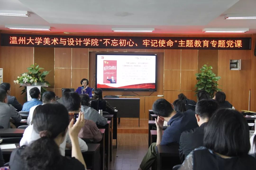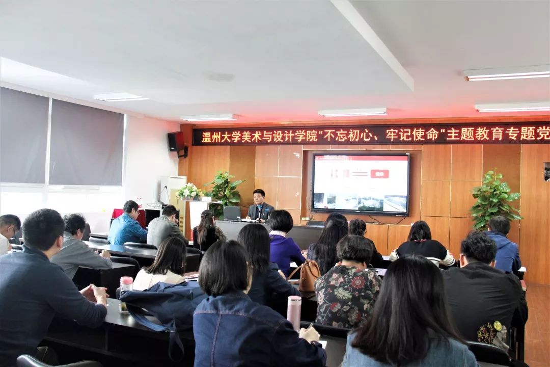 为扎实推进“不忘初心、牢记使命”主题教育,进一步增强党员的使命感和责任感,10月30日下午,美术学院党委书记叶正飞、院长谢子静在2B-4001会议室开展主题教育专题党课,学院全体教工党员参加,学校“不忘初心、牢记使命”主题教育办巡回督导二组组长戴梅红老师莅临指导。专题党课由学院党委副书记杨丽君主持。