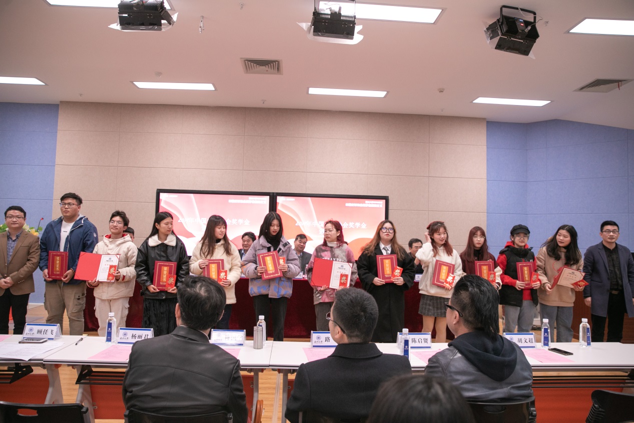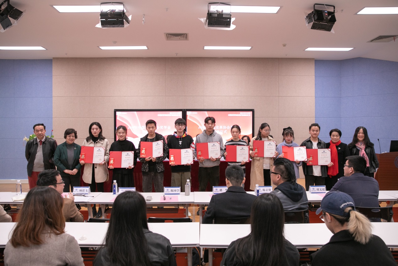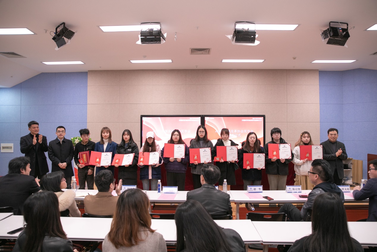 聂玉梅副秘书长代表协会宣读了《beat365英国官方网站2019年中国皮革协会奖学金获奖名单》。与会嘉宾为34名获奖学生颁发证书和奖金并合影留念。