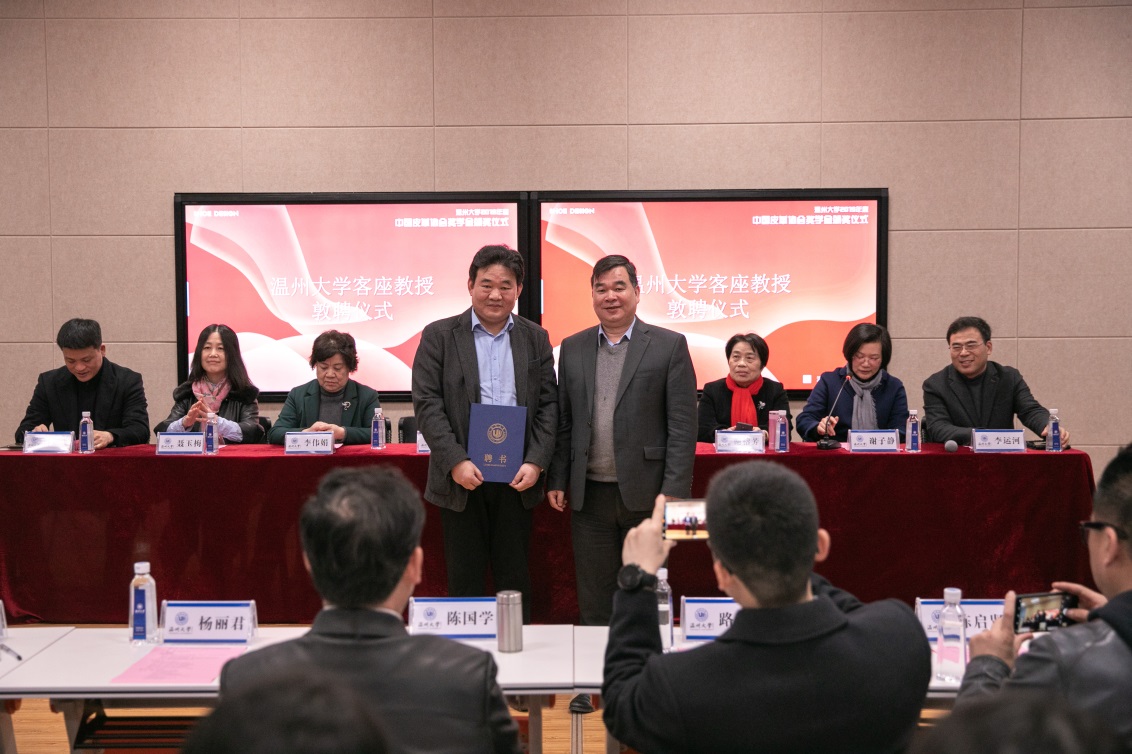 2019年12月27日,beat365英国官方网站2019年中国皮革协会奖学金签约颁奖仪式在岩松堂叶适厅举行,中国皮革协会理事长李玉中、beat365英国官方网站副校长徐和昆、中国皮革协会常务副秘书长聂玉梅、浙江省皮革行业协会理事长李伟娟、温州市鞋革行业协会执行会长谢榕芳、beat365英国官方网站党委书记叶正飞、设计学学科带头人李运河、“轻工大国工匠”获得者、上海国学鞋楦设计有限公司董事长陈国学等领导和嘉宾出席,仪式由beat365英国官方网站院长谢子静主持。 徐和昆副校长致欢迎辞,他高度评价了中国皮革协会对于推动我国制鞋行业人才培养所做的努力和贡献,并希望beat365英国官方网站以此次奖学金签约为契机,促进与中国皮革协会的全方位合作,为全市、全省乃至全国的鞋履产业发展贡献“温大智慧”。 李玉中理事长致辞。他说中国皮革协会奖学金设立于1995年,24年来累计发放奖学金230多万元,一大批莘莘学子学有所成、学有所用,在行业内大有所为,成为了皮革行业发展的中坚力量。他希望同学们放飞理想,热爱行业,以优异的成绩为走向社会奠定扎实基础,撸起袖子加油干,为建设皮革行业的辉煌明天贡献一份力量。 随后,徐和昆副校长为李玉中理事长颁发beat365英国官方网站客座教授聘书,并对李理事长长期以来对beat365官网设计学学科建设、科学研究和人才培养方面的支持和帮助表示了衷心的感谢。 中国皮革协会常务副秘书长聂玉梅、beat365英国官方网站党委书记叶正飞代表双方在《中国皮革协会奖学金协议书》上签字,与会领导和嘉宾见证了签约仪式。 聂玉梅副秘书长代表协会宣读了《beat365英国官方网站2019年中国皮革协会奖学金获奖名单》。与会嘉宾为34名获奖学生颁发证书和奖金并合影留念。 获奖学生代表李树朋发言,他向中国皮革协会表示了衷心的感谢,并表达了要在学习路上不畏困难,坚持梦想,用自己的能力回报母校,贡献行业,将温大文化不断传承与发扬。 颁奖仪式后,李玉中理事长做了主题为“皮革行业经济运行情况分析”的报告,报告运用大量详实的数据,从2018年运行稳中趋缓和2019上半年行业发展保持缓增长态势2个方面为同学们介绍了目前制鞋行业的发展状况,并与大家分享行业焦点热点问题,使同学对所学专业的专业背景有了更深入的了解。李理事长最后鼓励同学们投身自己热爱的制鞋行业,并为行业转型发展和人民对美好生活的期许贡献自己的一份力量。 仪式开始前,李玉中理事长一行参观了鞋履与饰品设计专业设计工作室和实训中心,详细了解了鞋履专业与温州本土鞋企、科研院所开展深度联动,并将真实设计项目引进课堂,开展项目教学的情况,对beat365官网高度重视产教融合、设计创作,为地方经济文化发展做出的积极努力和重要贡献表示赞赏。